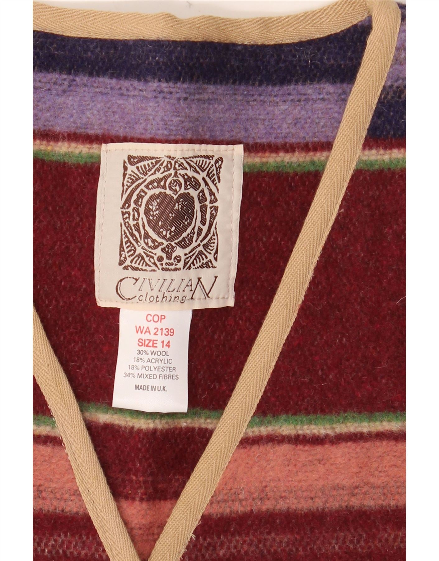 CIVILIAN Pull cardigan surdimensionné pour femme UK 14 Large Multicolore