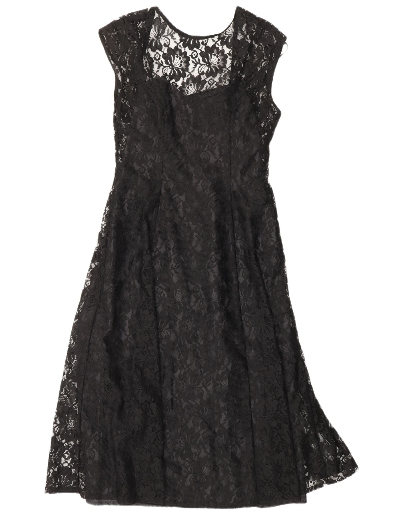 CLASSIC Robe trapèze pour femme UK 12 Nylon floral noir moyen