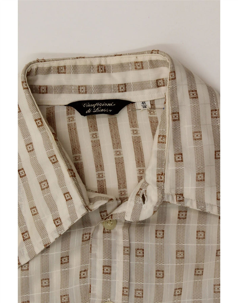 CONFEZIONI DI LUSSO Chemise Homme Taille 16 41 Grand Beige Géométrique