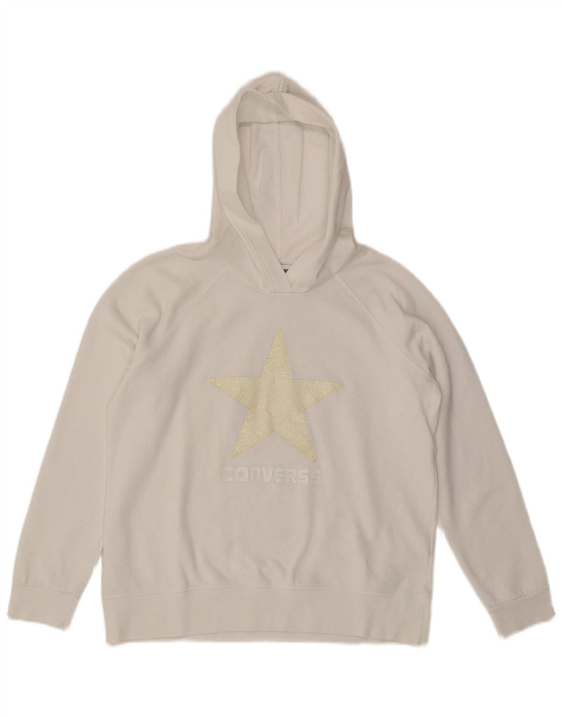 CONVERSE Pull à capuche graphique pour femme UK 14 en coton blanc moyen