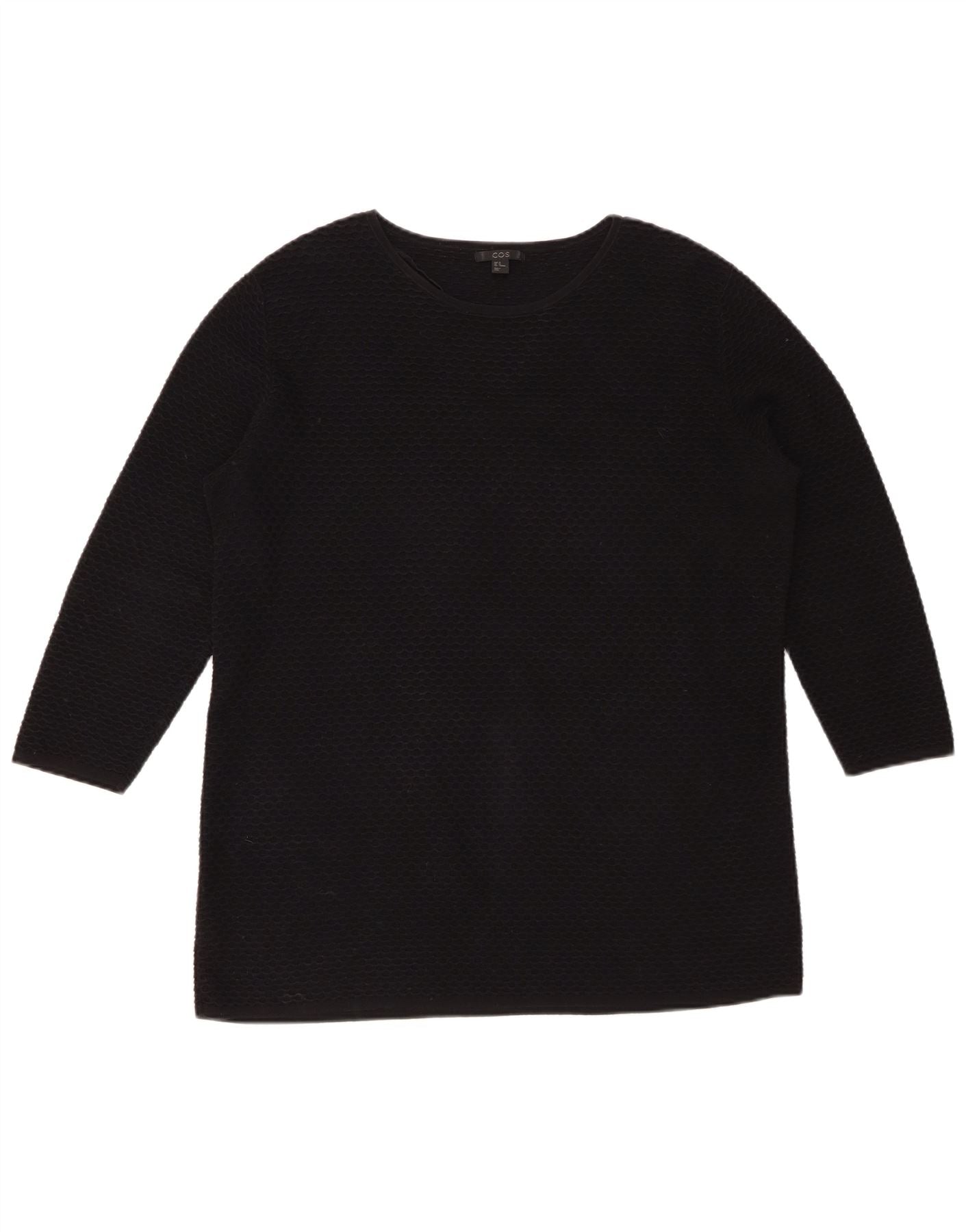 COS Haut Femme Manches 3/4 UK 14 Coton Noir Moyen