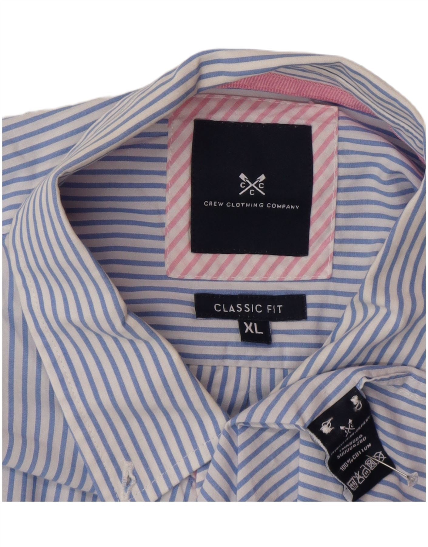 Crew Clothing Chemise Coupe Classique Homme XL Bleu Rayé Coton