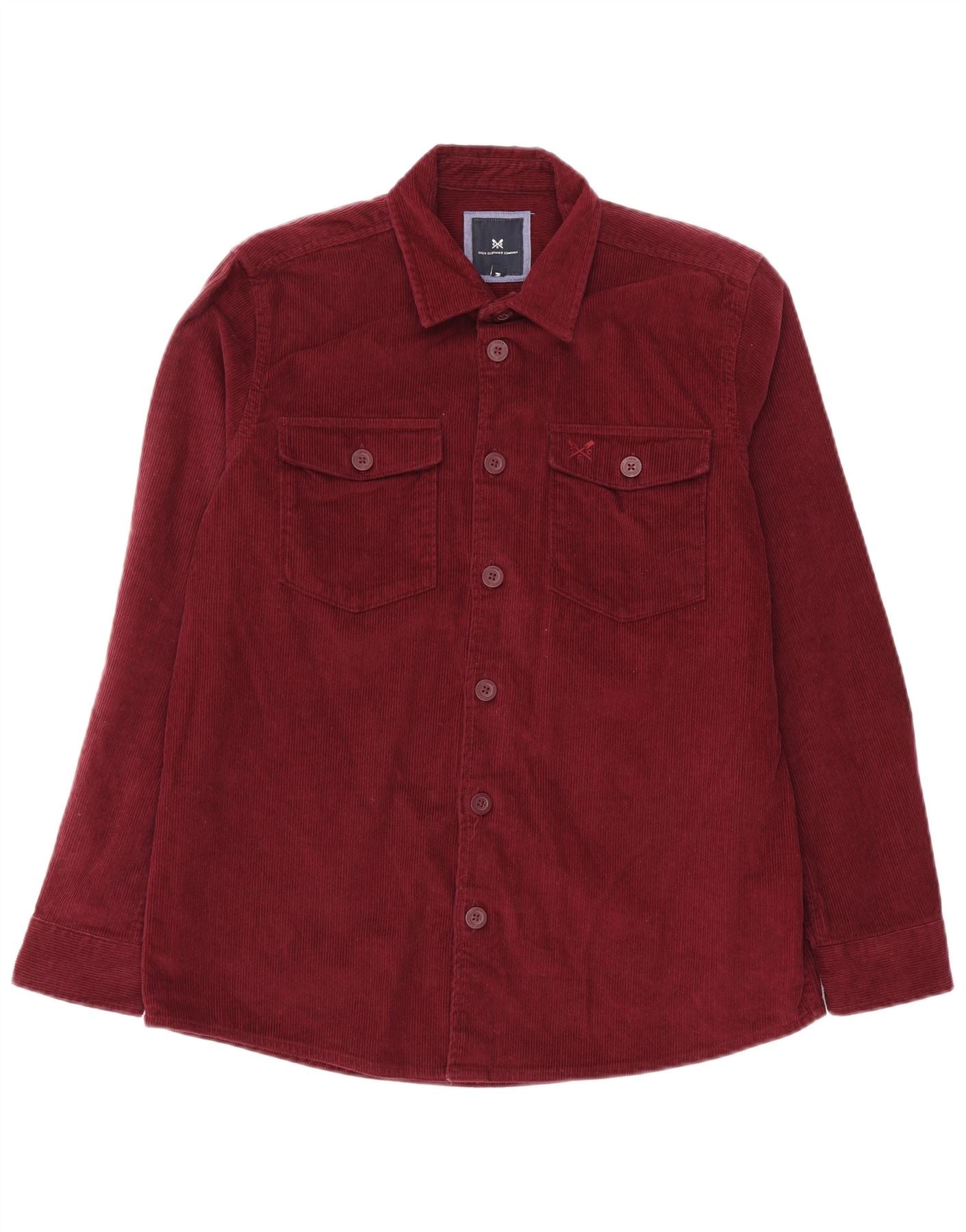 CREW CLOTHING Chemise en velours côtelé pour homme en coton bordeaux moyen