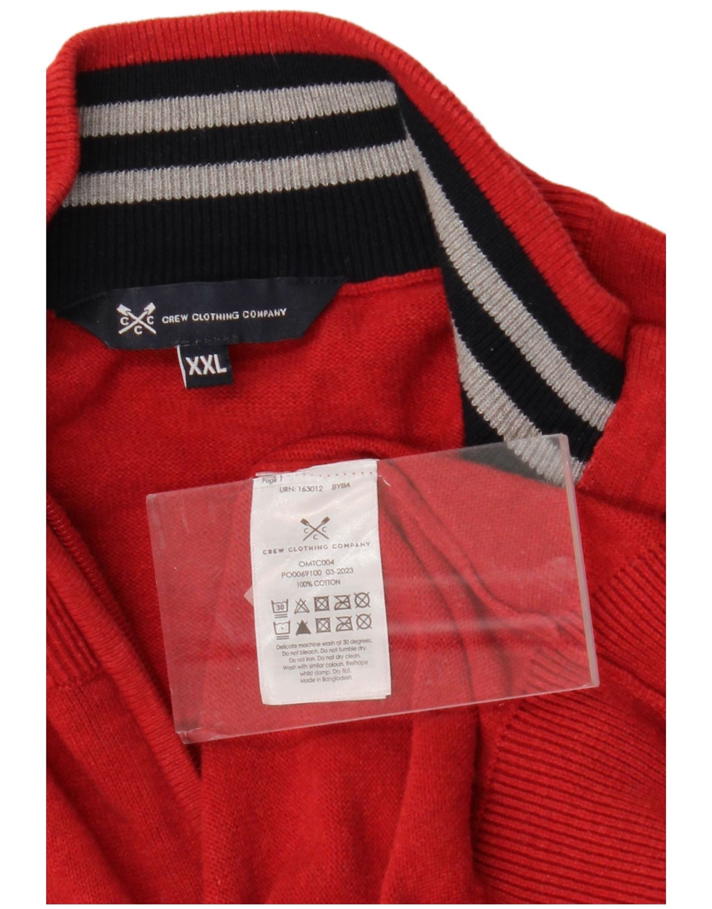 CREW CLOTHING Pull à col zippé pour homme en coton rouge 2XL