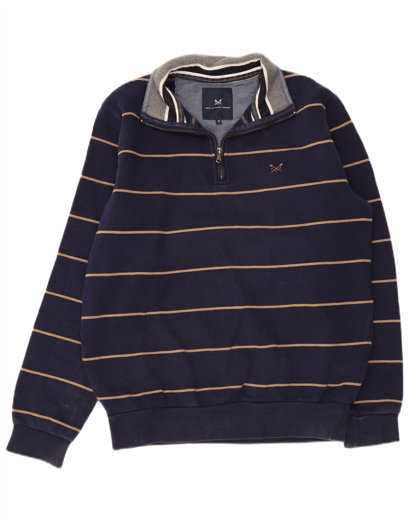 CREW CLOTHING Sweat-shirt à col zippé pour homme Petit rayé bleu marine