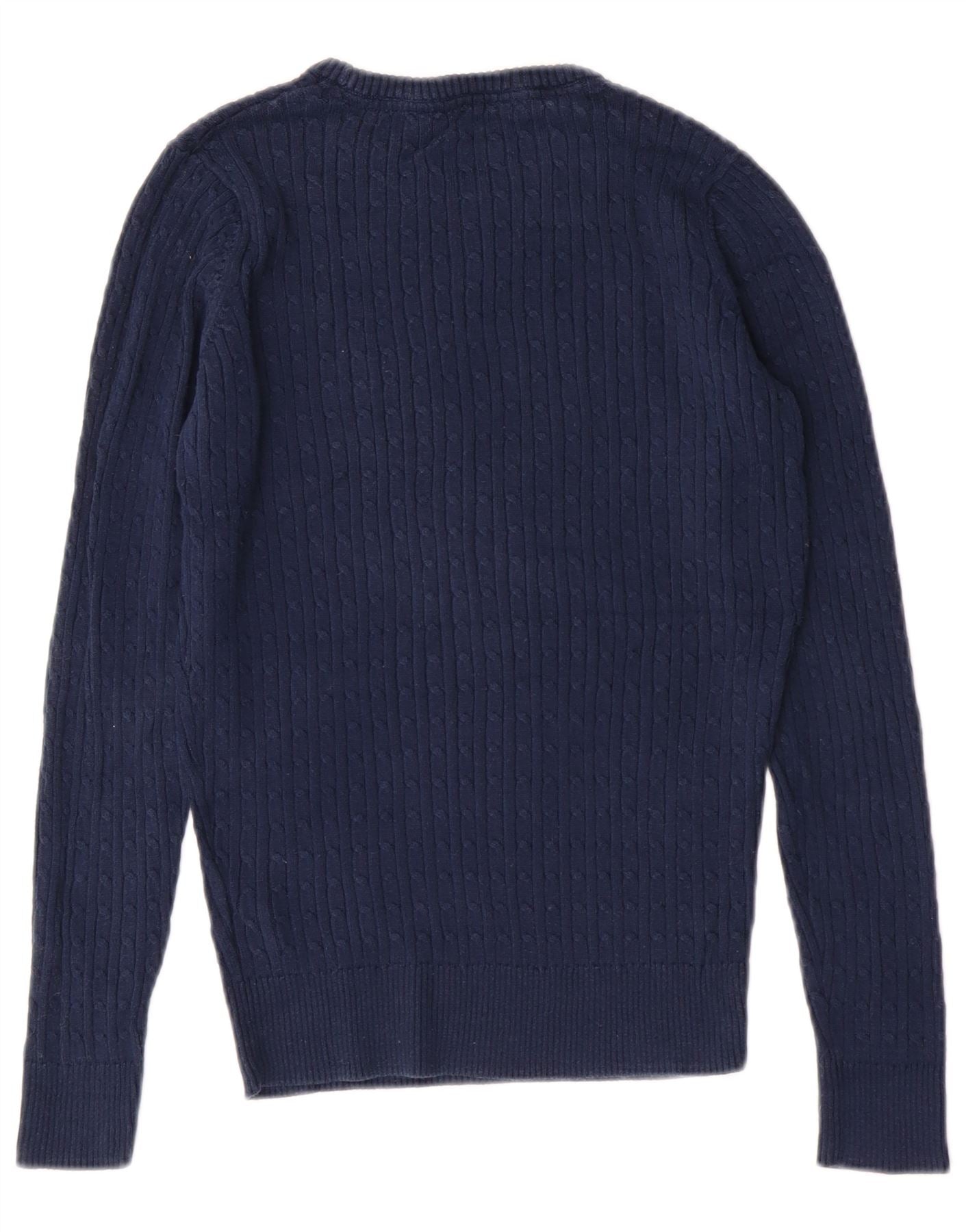 - Description de l'IA : Ce pull Crew Clothing pour femme est confectionné en tricot 100 % coton avec une texture torsadée classique. Il présente une encolure ras du cou confortable et des manches longues. La conception du pull offre une coupe régulière pour un port facile. Un petit logo brodé ajoute un détail subtil de la marque. Ce pull bleu marine est un ajout intemporel à toute garde-robe.