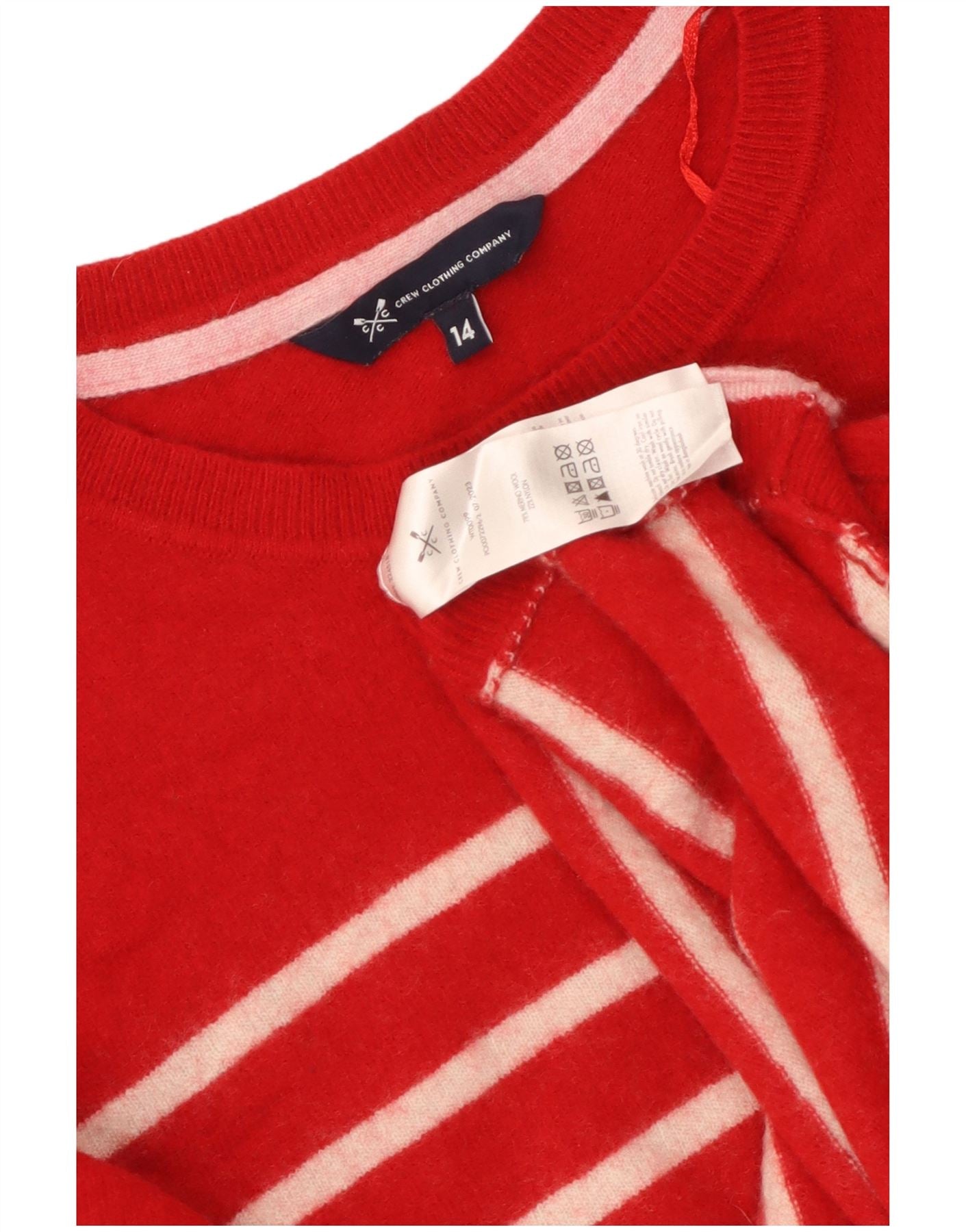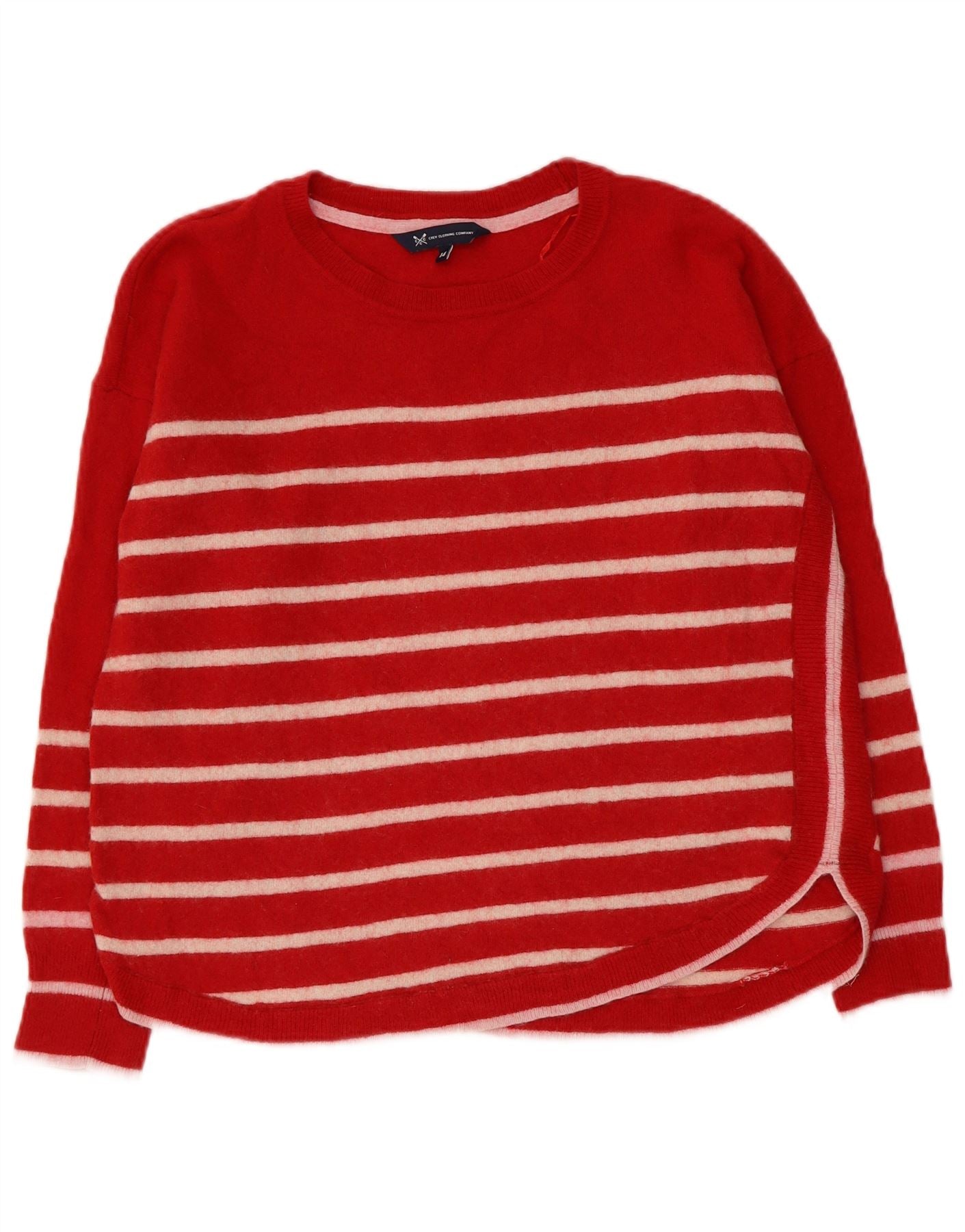 CREW CLOTHING Pull col bateau pour femme UK 14 Grande laine rayée rouge