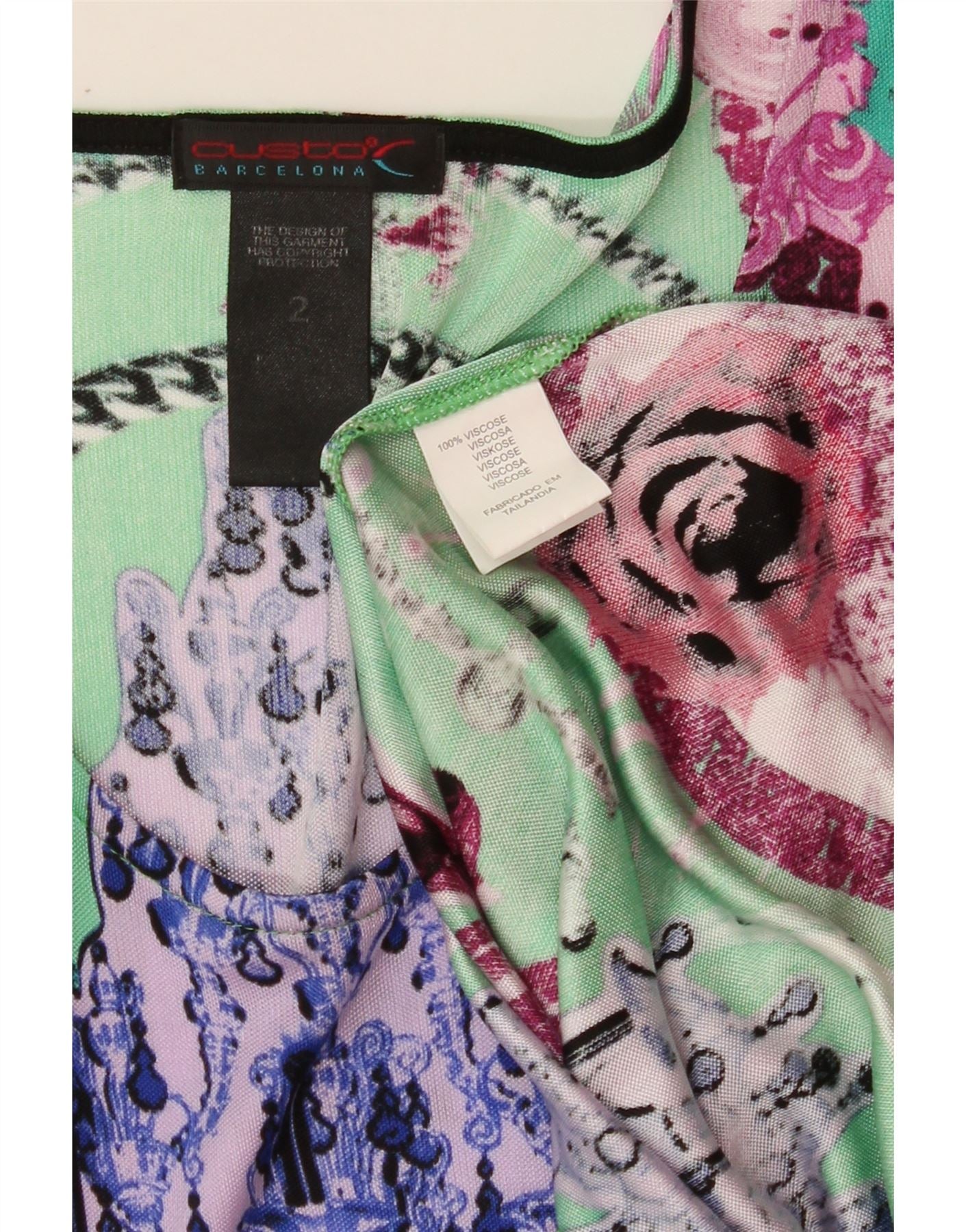 CUSTO BARCELONA Womens Graphic Shift Dress US 2 XS Green Viscose