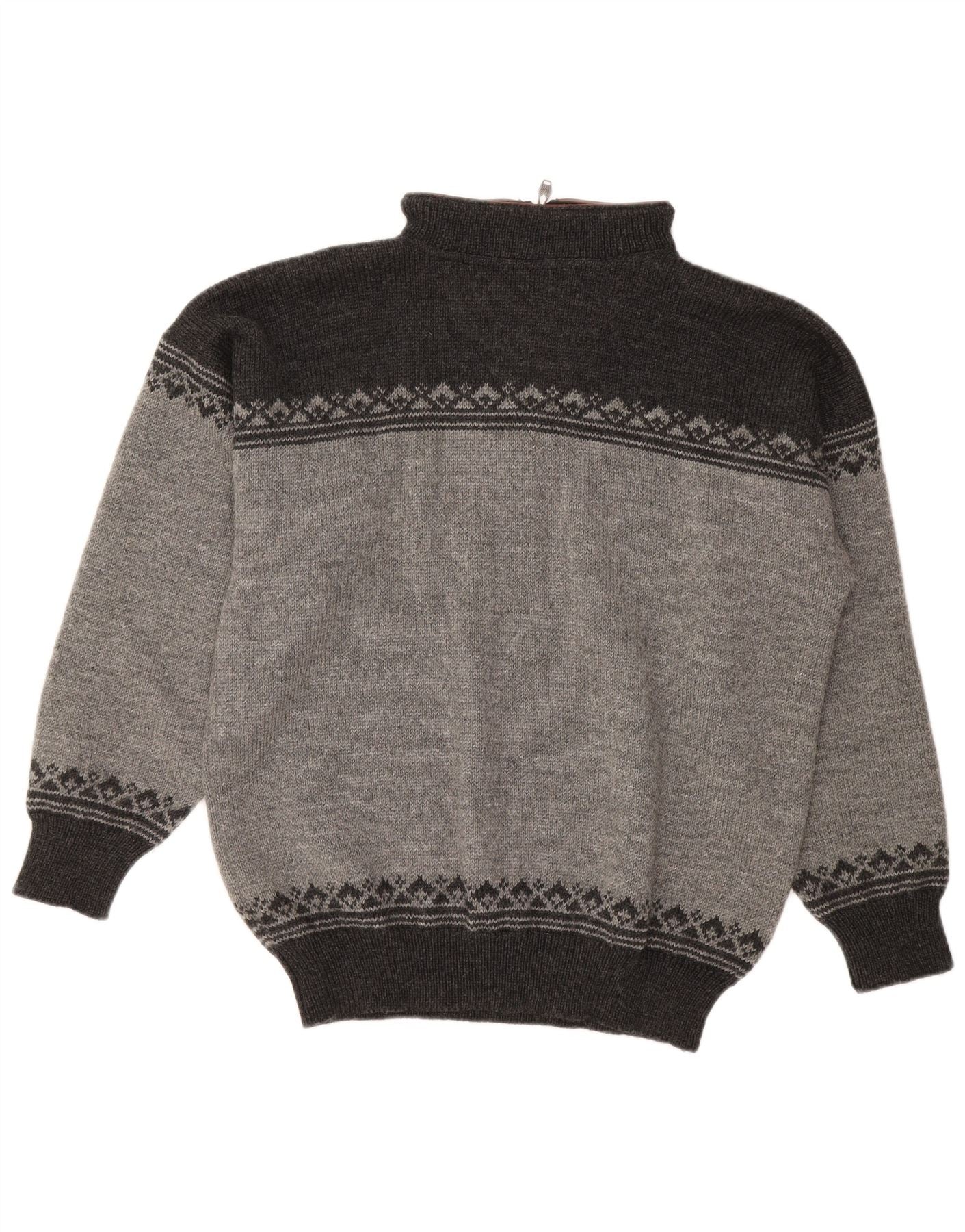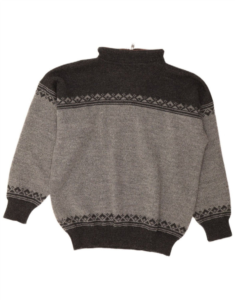 DALE OF NORWAY Mens Zip Neck Jumper Sweater Large Grey Fair Isle Wool