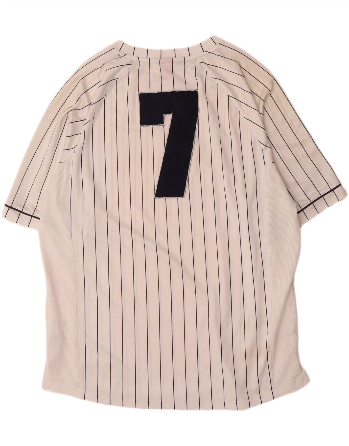 - AI Description: This DC men's Jersey Top is expertly crafted from 100% polyester, offering a lightweight and breathable woven finish. It features a classic round neckline and short sleeves for optimal comfort during activity. A subtle pinstripe pattern lends classic sporting style, enhanced by a practical button neck closure. The regular fit ensures ease of movement. This performance top also includes a distinctive logo accent, perfect for active wear.