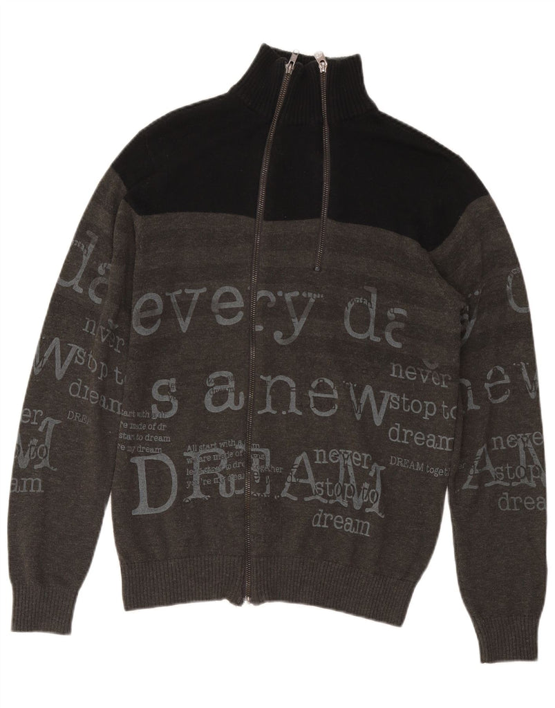 DESIGUAL Pull Cardigan Graphique Homme Petit Gris Colorblock Laine