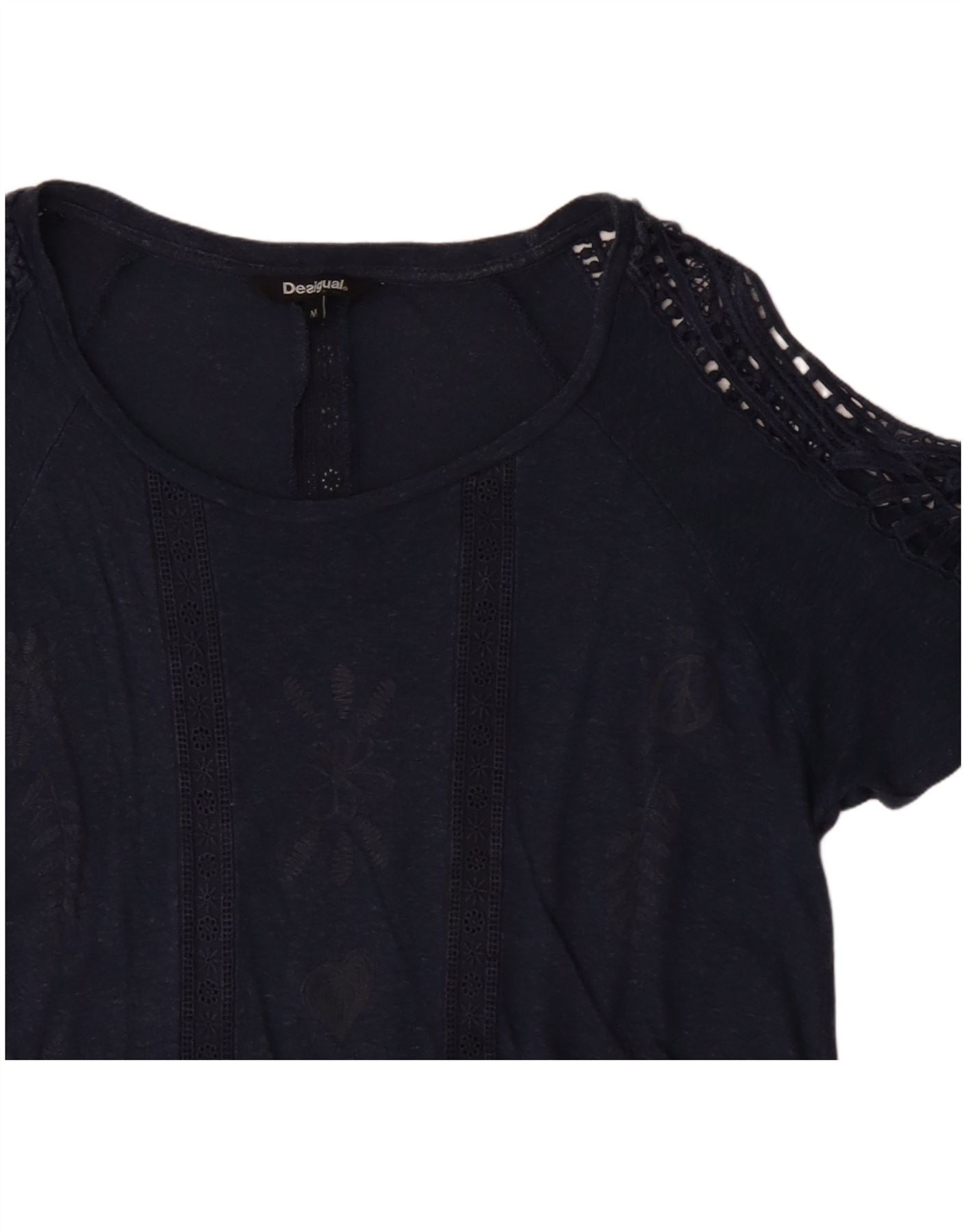 DESIGUAL Femme Chemisier Top UK 12 Medium Navy Blue Floral