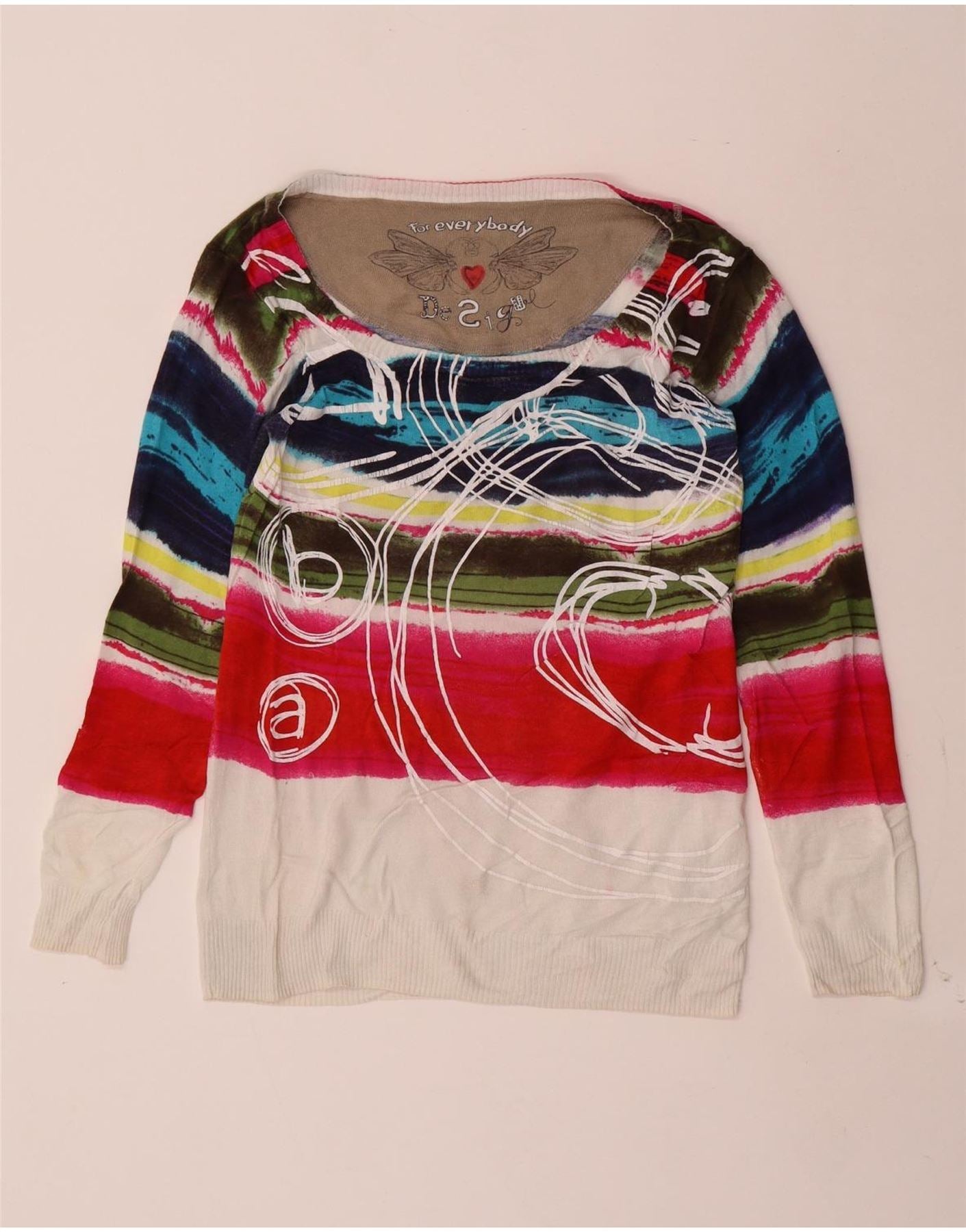 Desigual Femme Pull Col Bateau UK 12 Moyen Multicolore