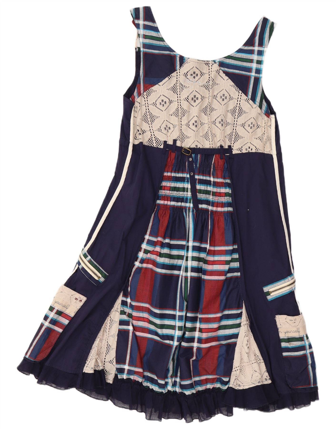 DESIGUAL Robe trapèze graphique pour femme EU 40 Bleu marine moyen Patchwork