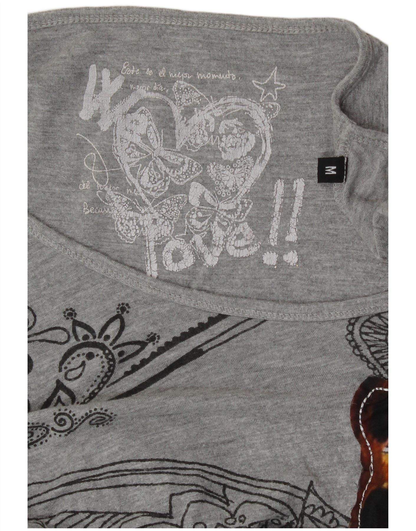 DESIGUAL T-Shirt Graphique Femme UK 14 Papillon Gris Moyen
