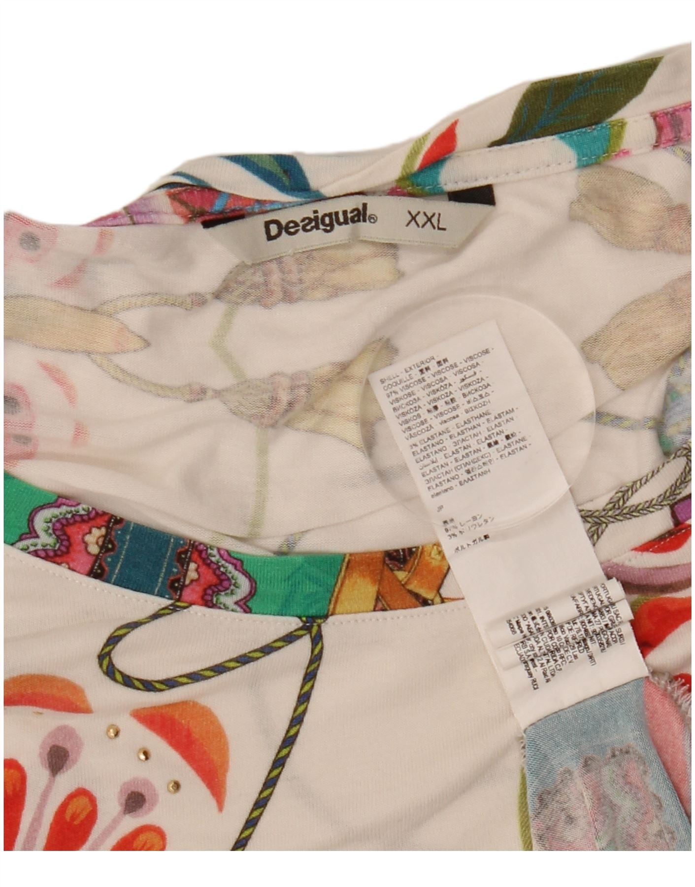 DESIGUAL T-Shirt Graphique Femme UK 20 2XL Viscose Florale Multicolore