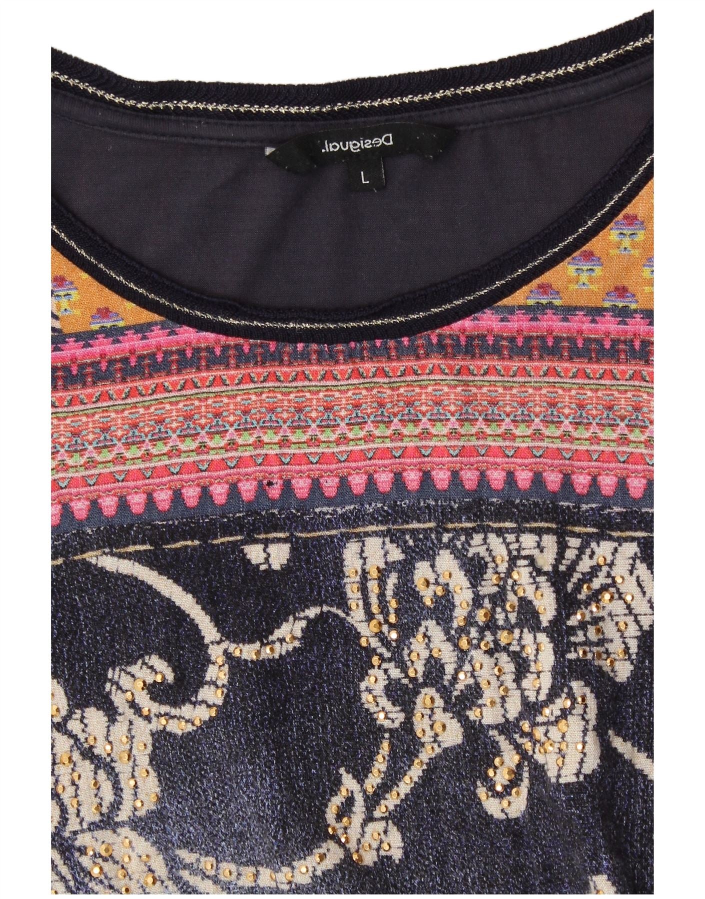 DESIGUAL Haut graphique pour femme à manches 3/4 UK 14 Large Gris Floral