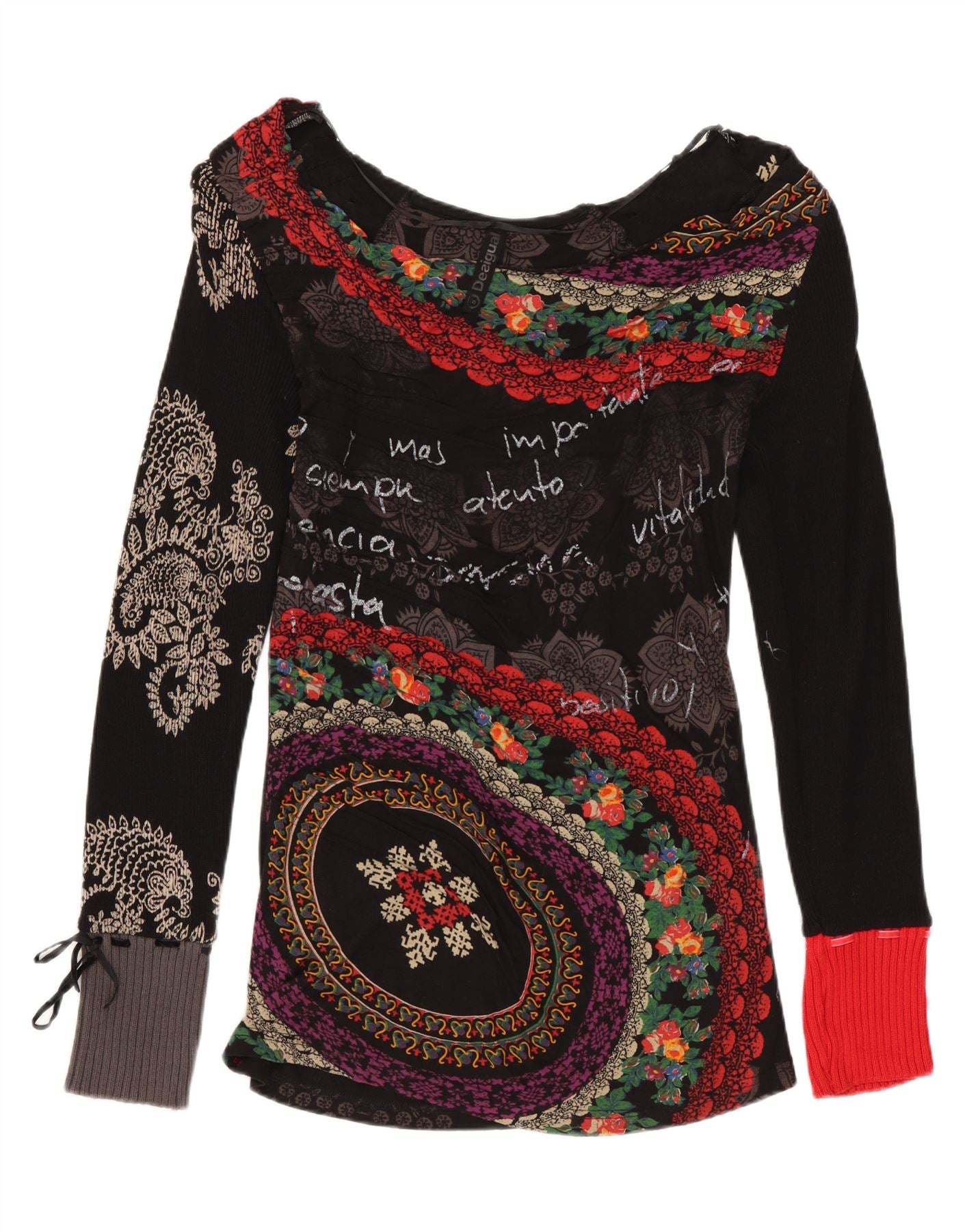 DESIGUAL Haut graphique à manches longues pour femme UK 12 Coton floral noir moyen