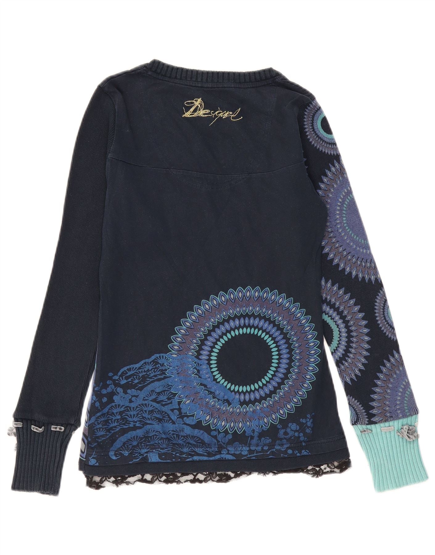 DESIGUAL Pull graphique à col en V pour femme UK 8 Petit Bleu Marine Floral