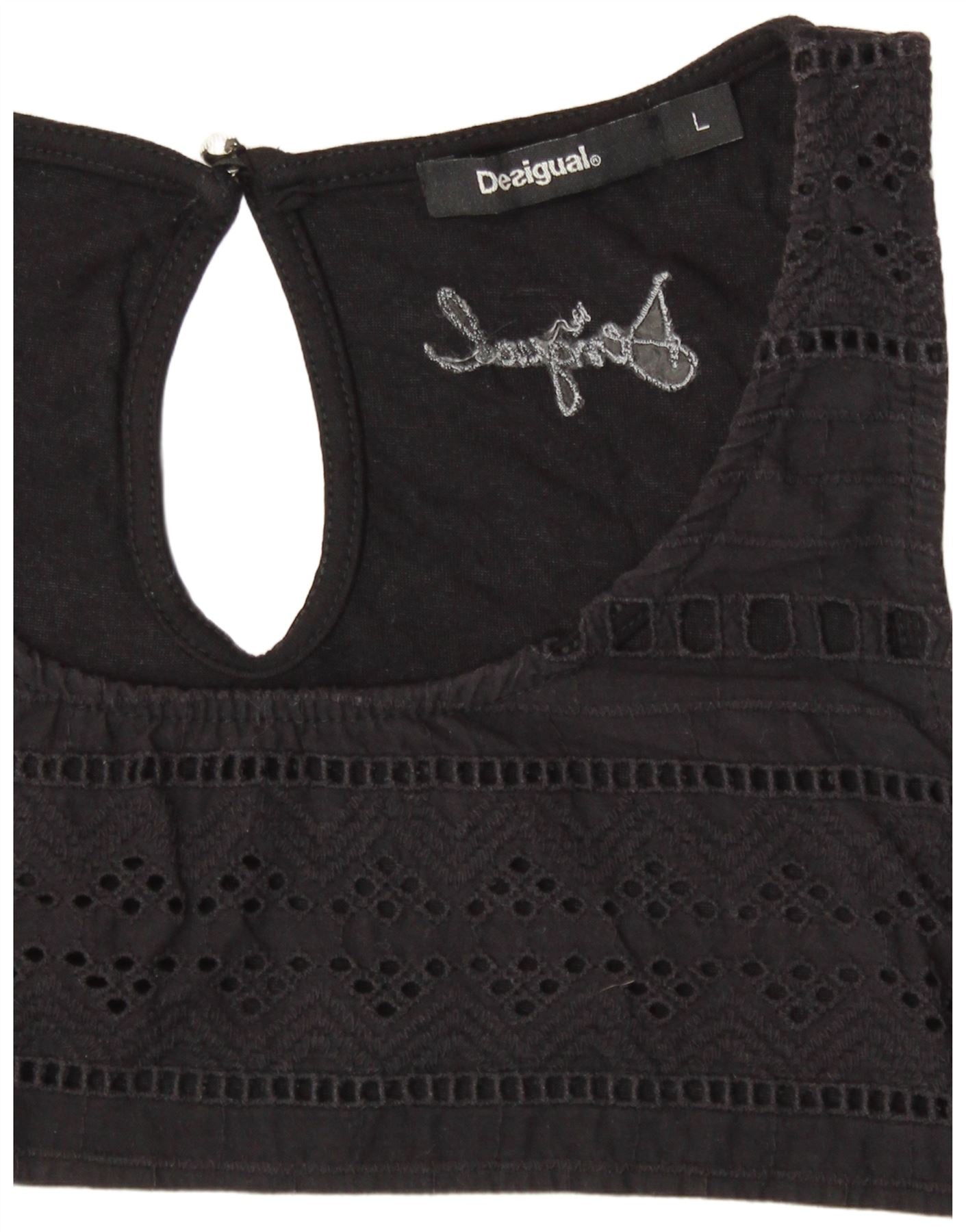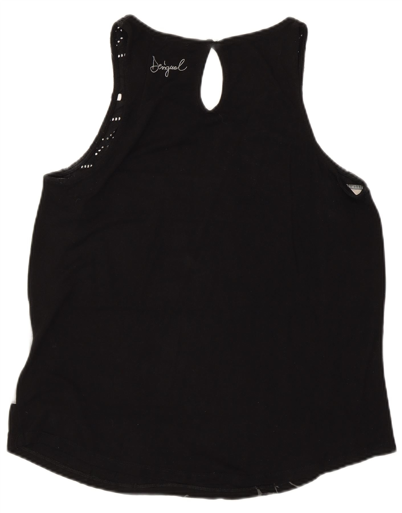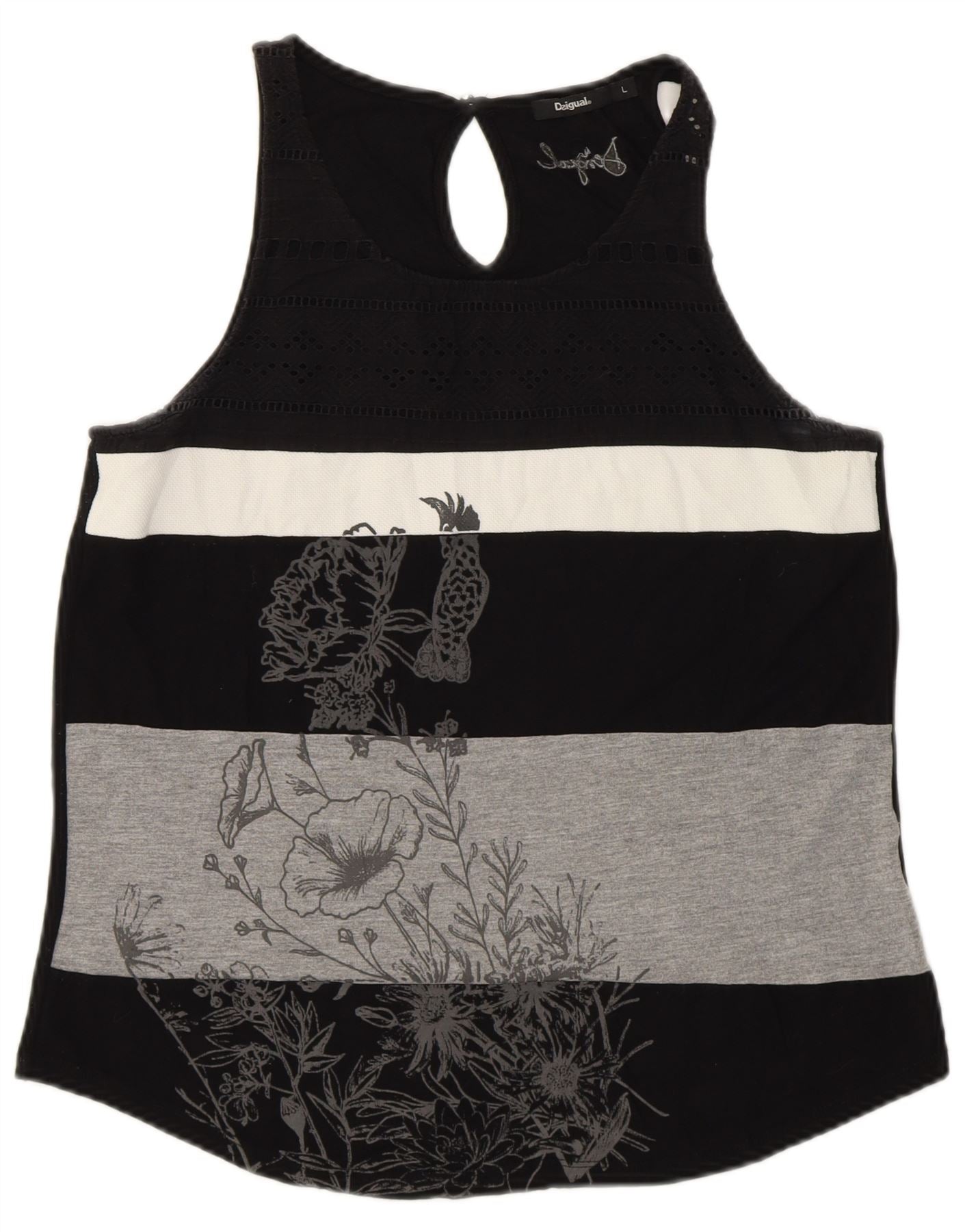 DESIGUAL Débardeur graphique pour femme UK 14 Large Noir Rayé