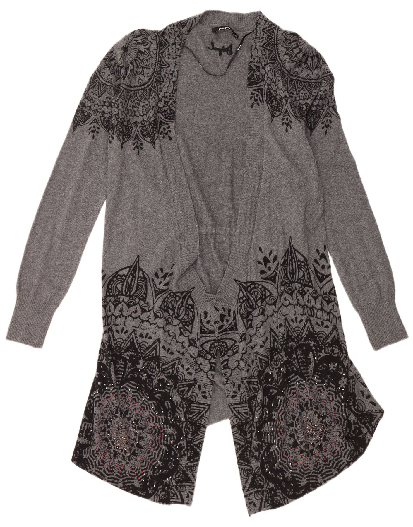 DESIGUAL Pull cardigan ouvert long pour femme UK 12 Gris moyen floral