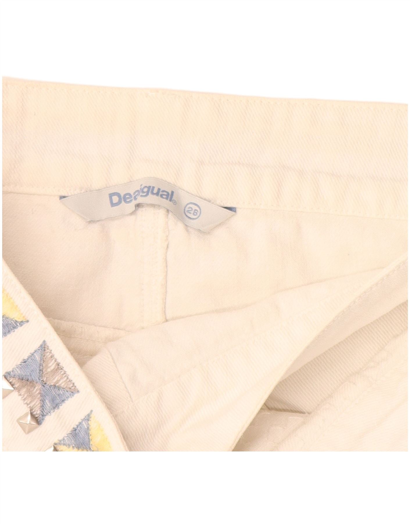 Desigual Femme Mini Jupe En Jean W26 Petit Blanc Coton