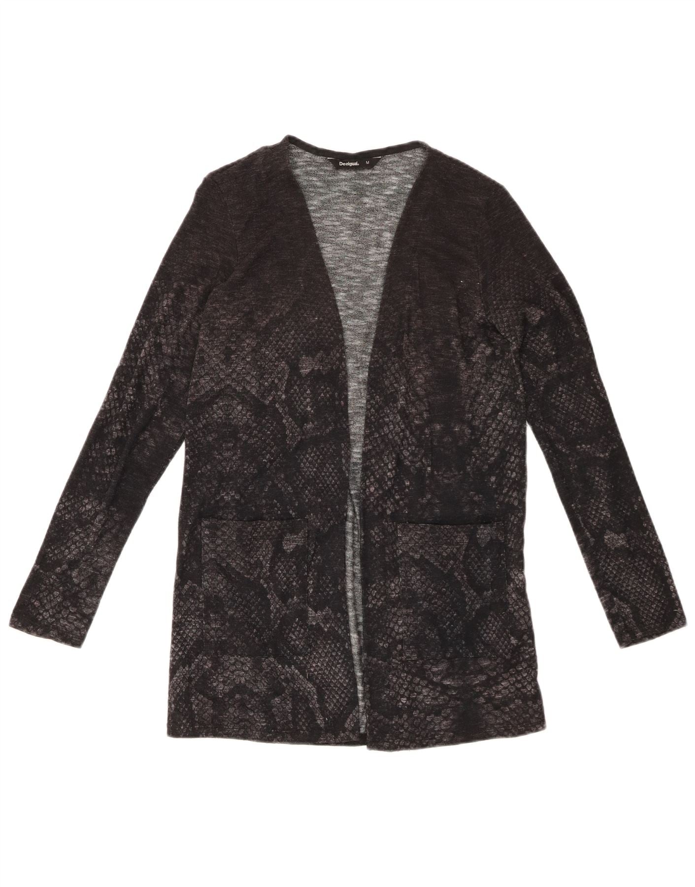 DESIGUAL Pull Cardigan Ouvert pour Femme UK 12 Gris Moyen Imprimé Animal