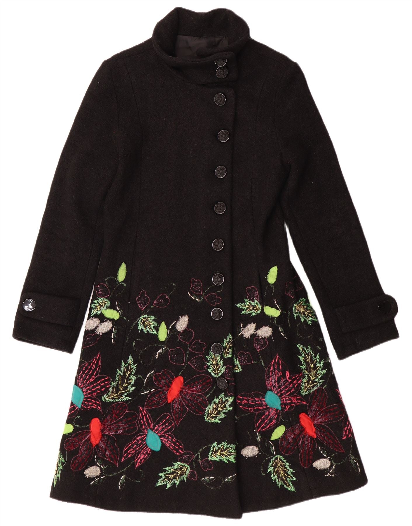 DESIGUAL Manteau Femme UK 10 Petit Noir Floral Viscose Bohème