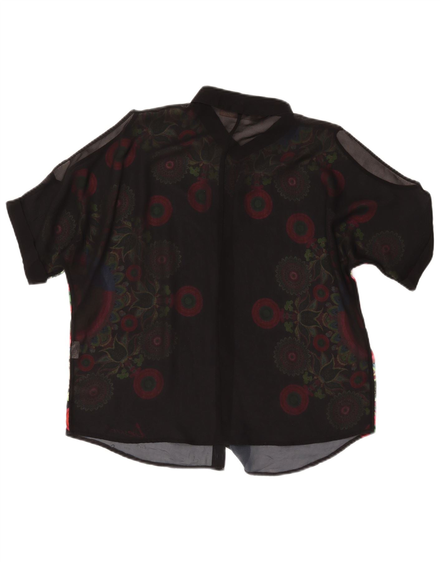 DESIGUAL Chemisier transparent pour femme UK 16 Large Noir Floral