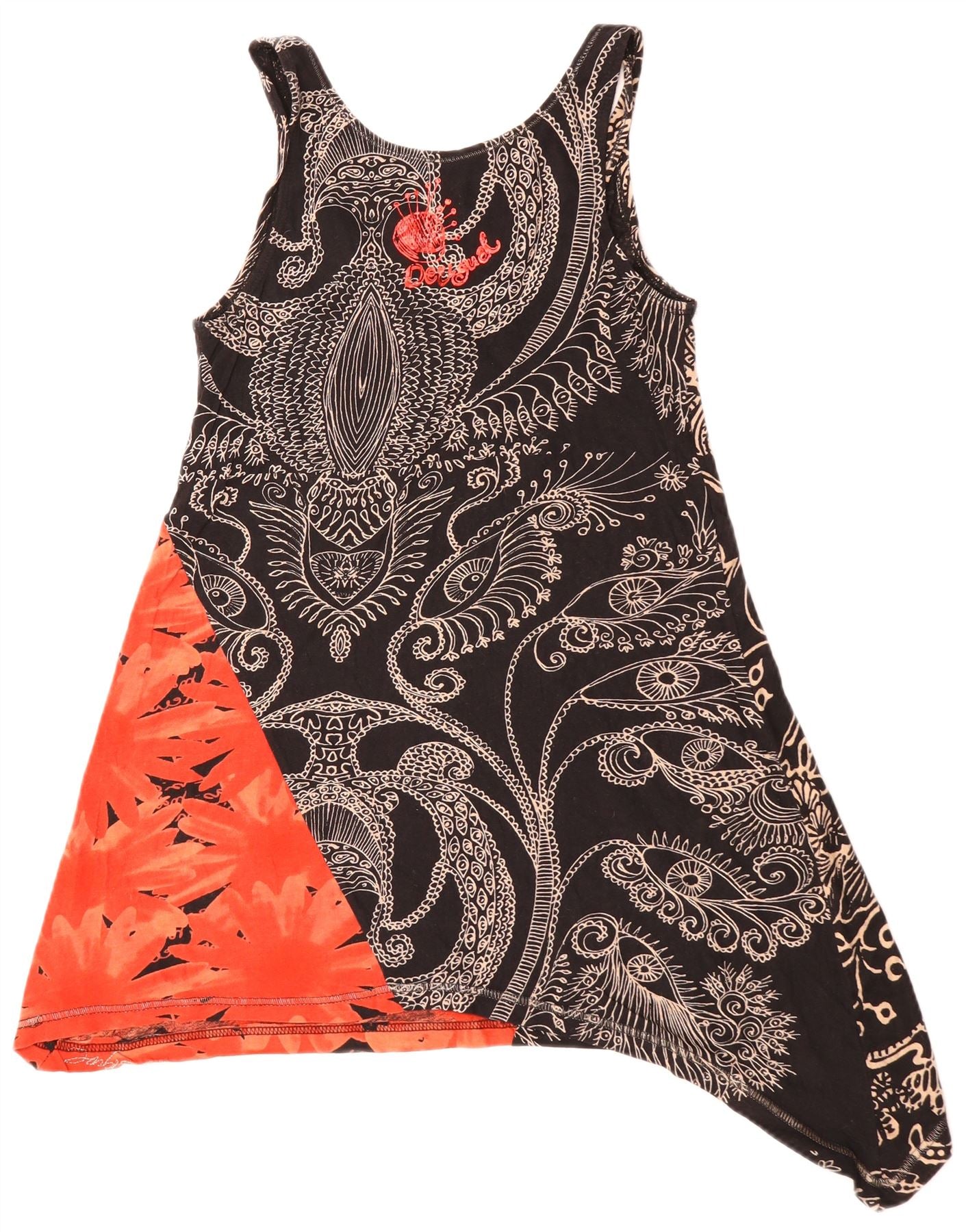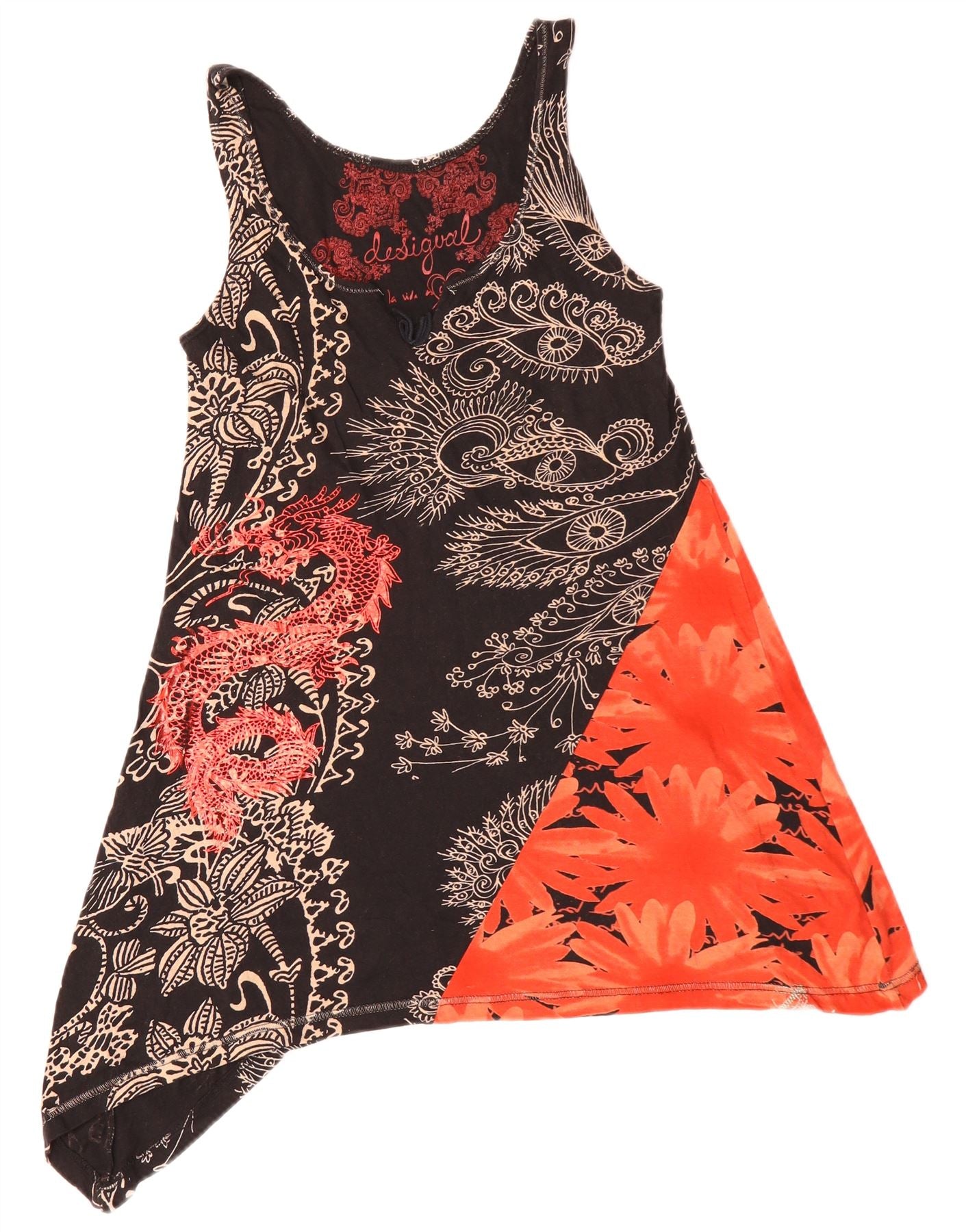 DESIGUAL Tunique asymétrique sans manches pour femme UK 10 Small Black Floral