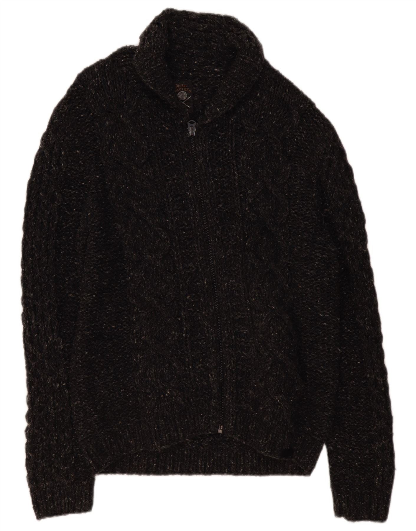 DIESEL Cardigan Homme Pull Large Gris Moucheté Laine
