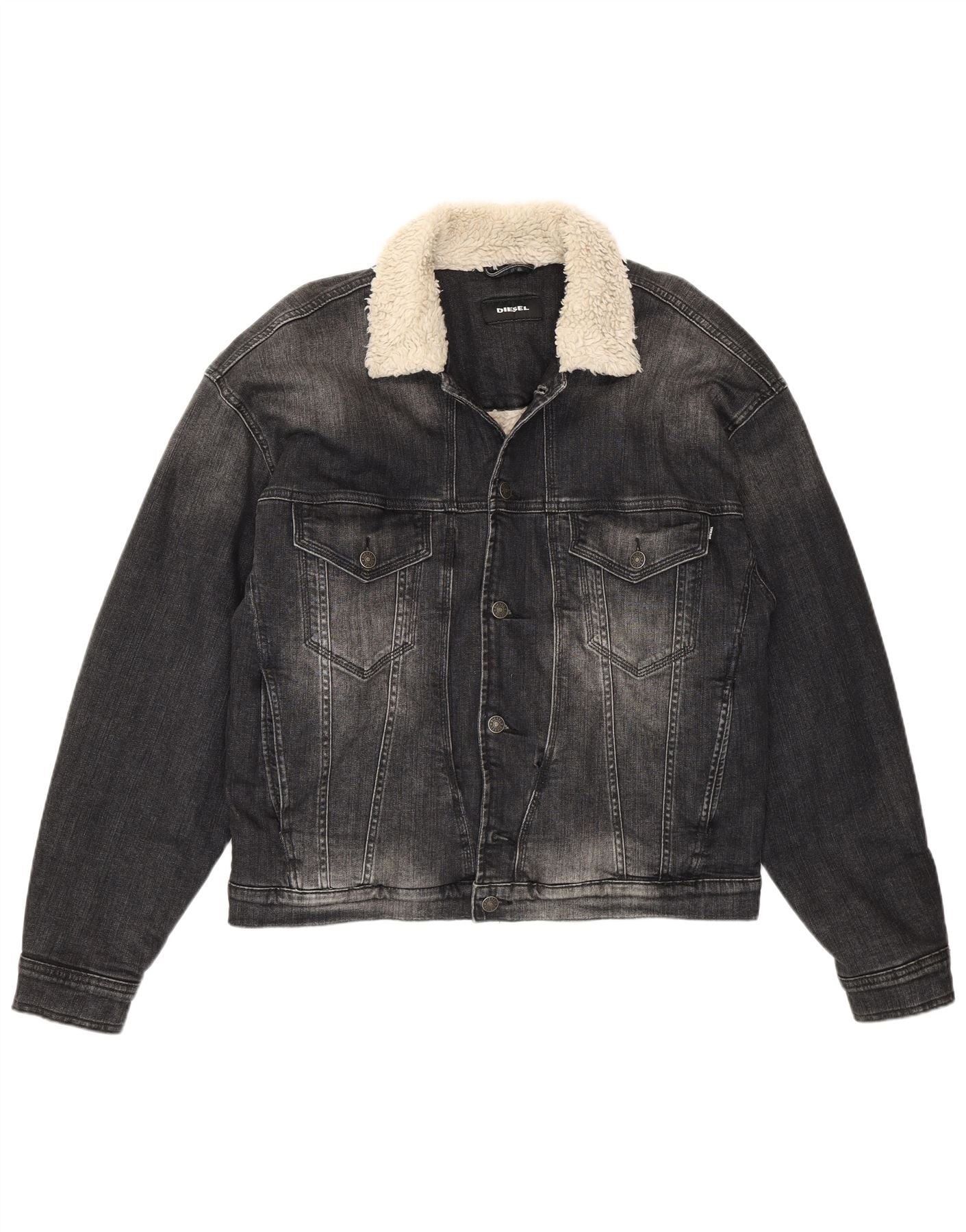 DIESEL Veste Sherpa en jean pour homme UK 40 Large Gris Coton