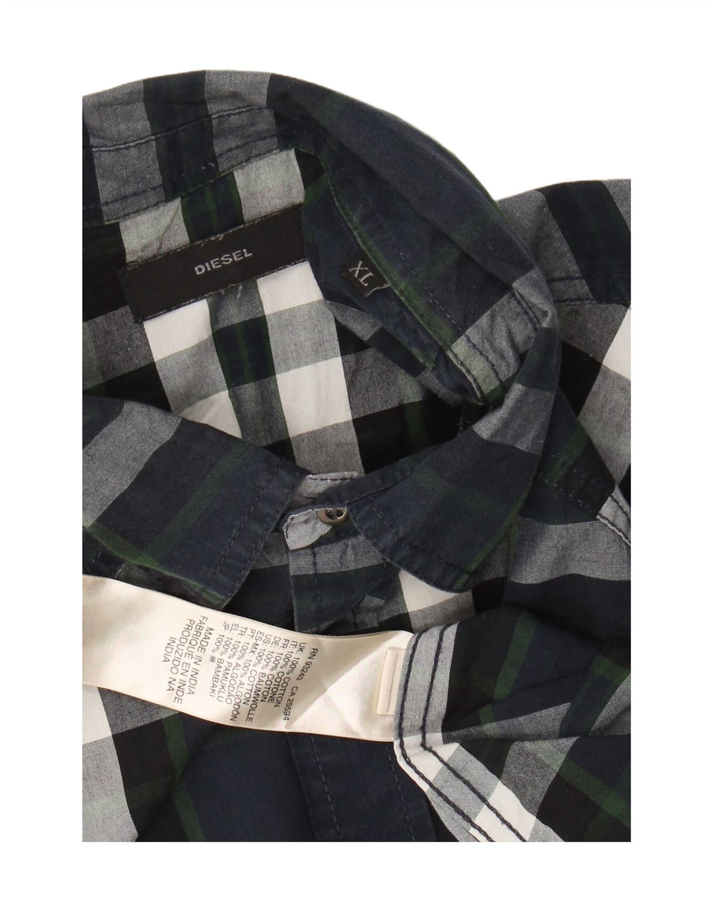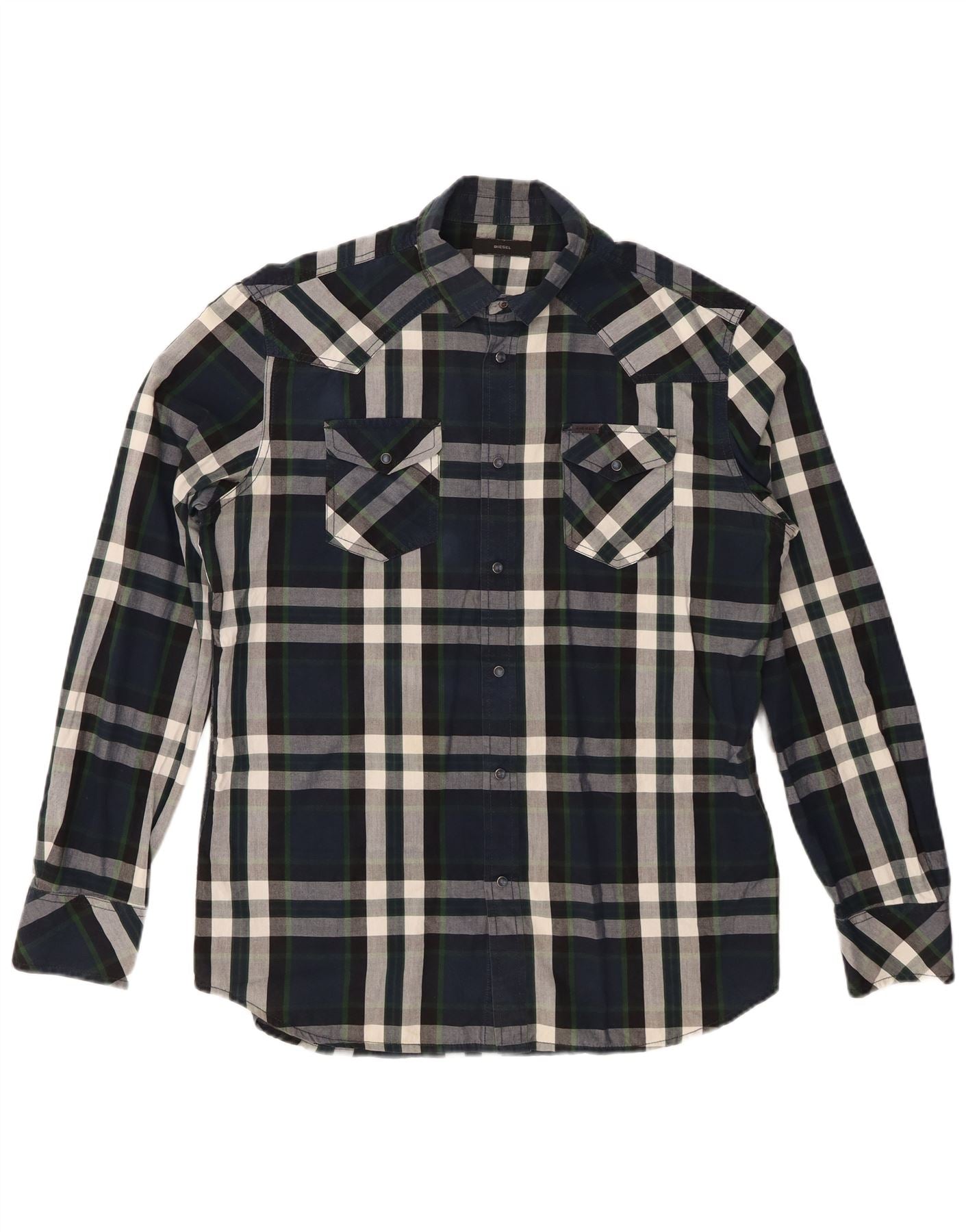 DIESEL Chemise Homme XL Bleu Marine Carreaux Coton