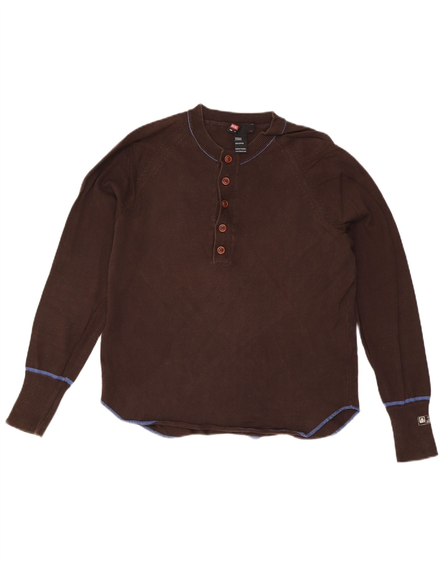DIESEL Pull col boutonné pour femme UK 14 en coton marron moyen