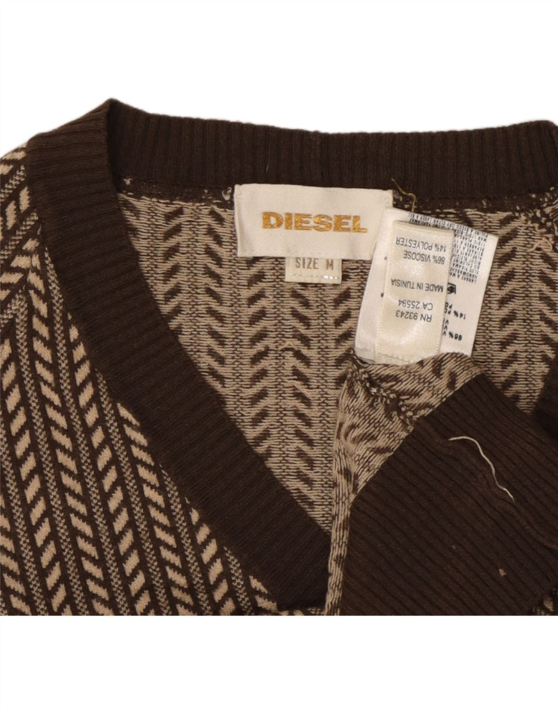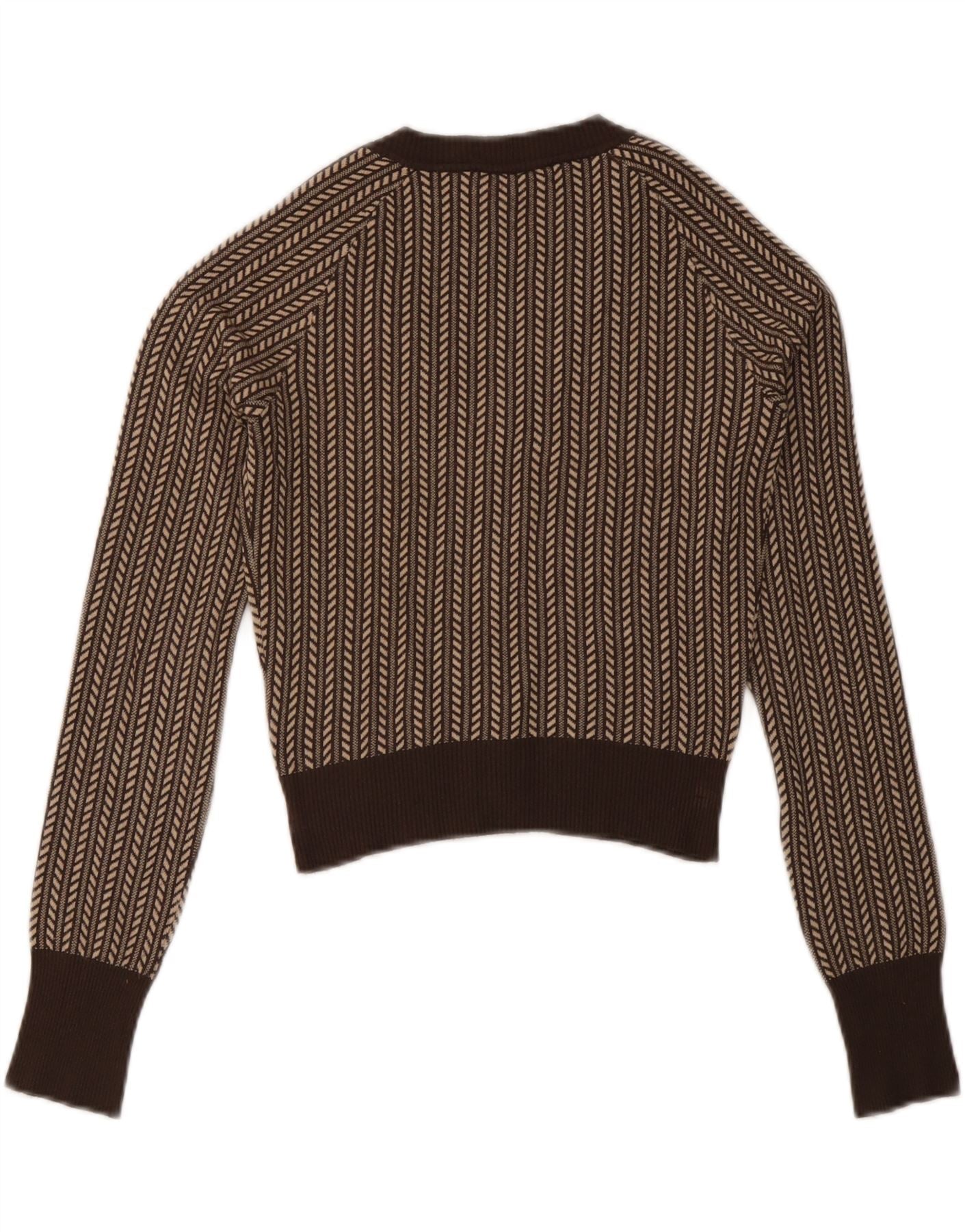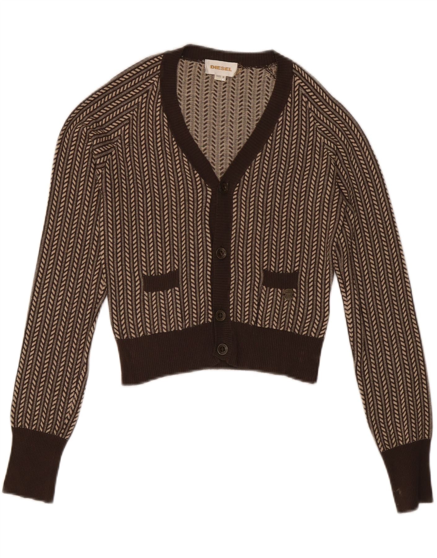 DIESEL Cardigan court pour femme UK 12 en viscose rayée marron moyen