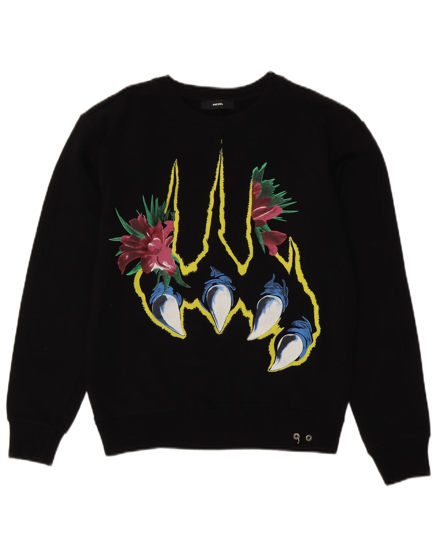DIESEL Sweat-shirt graphique pour femme UK 10 Petit coton noir