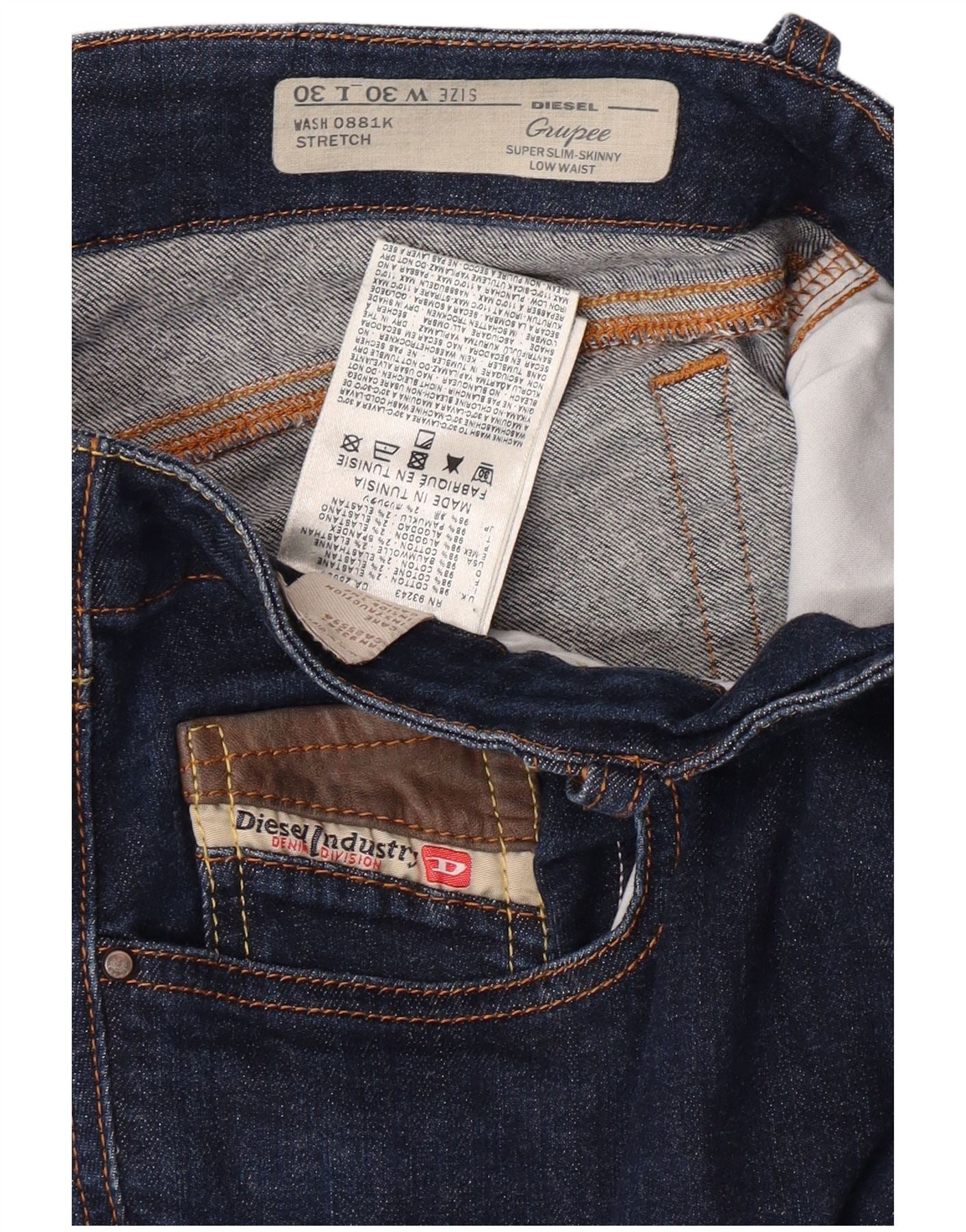 DIESEL Femme Grupee Jean Skinny Taille Basse Super Slim W30 L30 Bleu Marine
