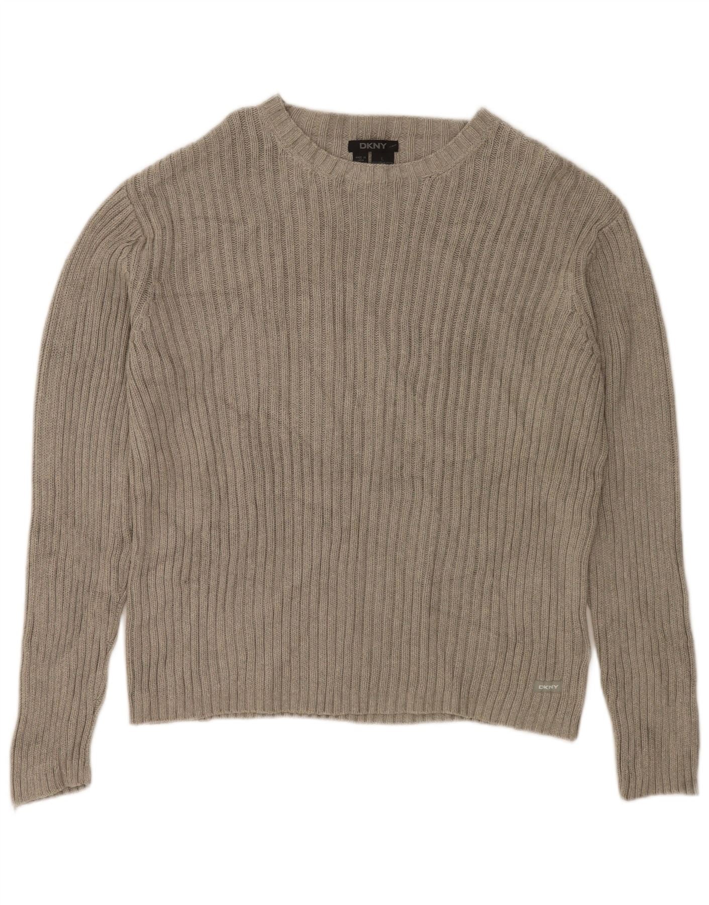 DKNY Pull col bateau pour femme UK 16 Large Gris Coton