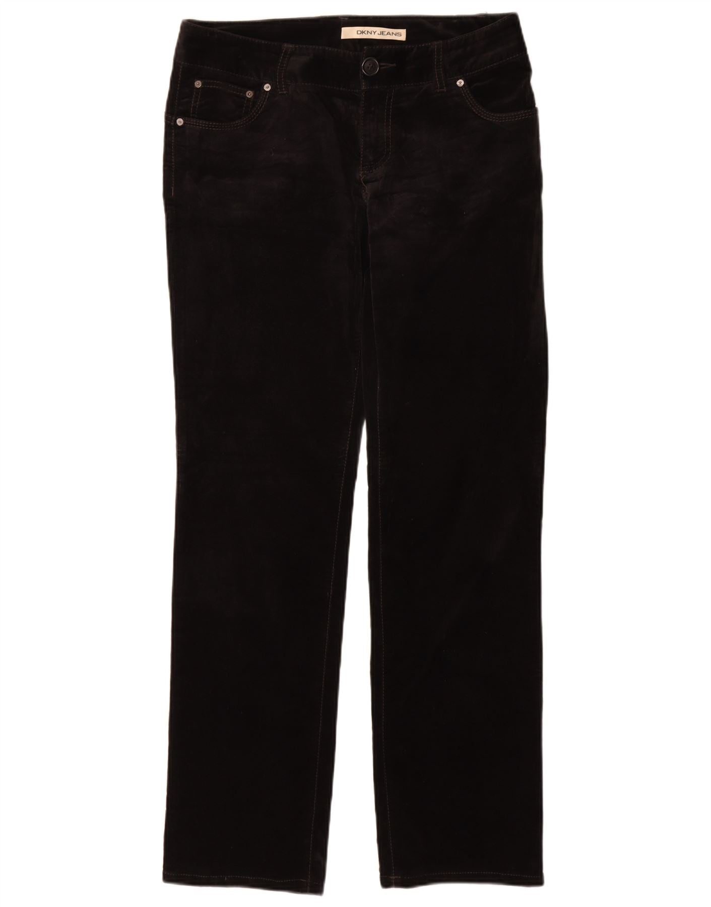 DKNY Pantalon décontracté droit en velours pour femme US 8 Medium W30 L33 Noir