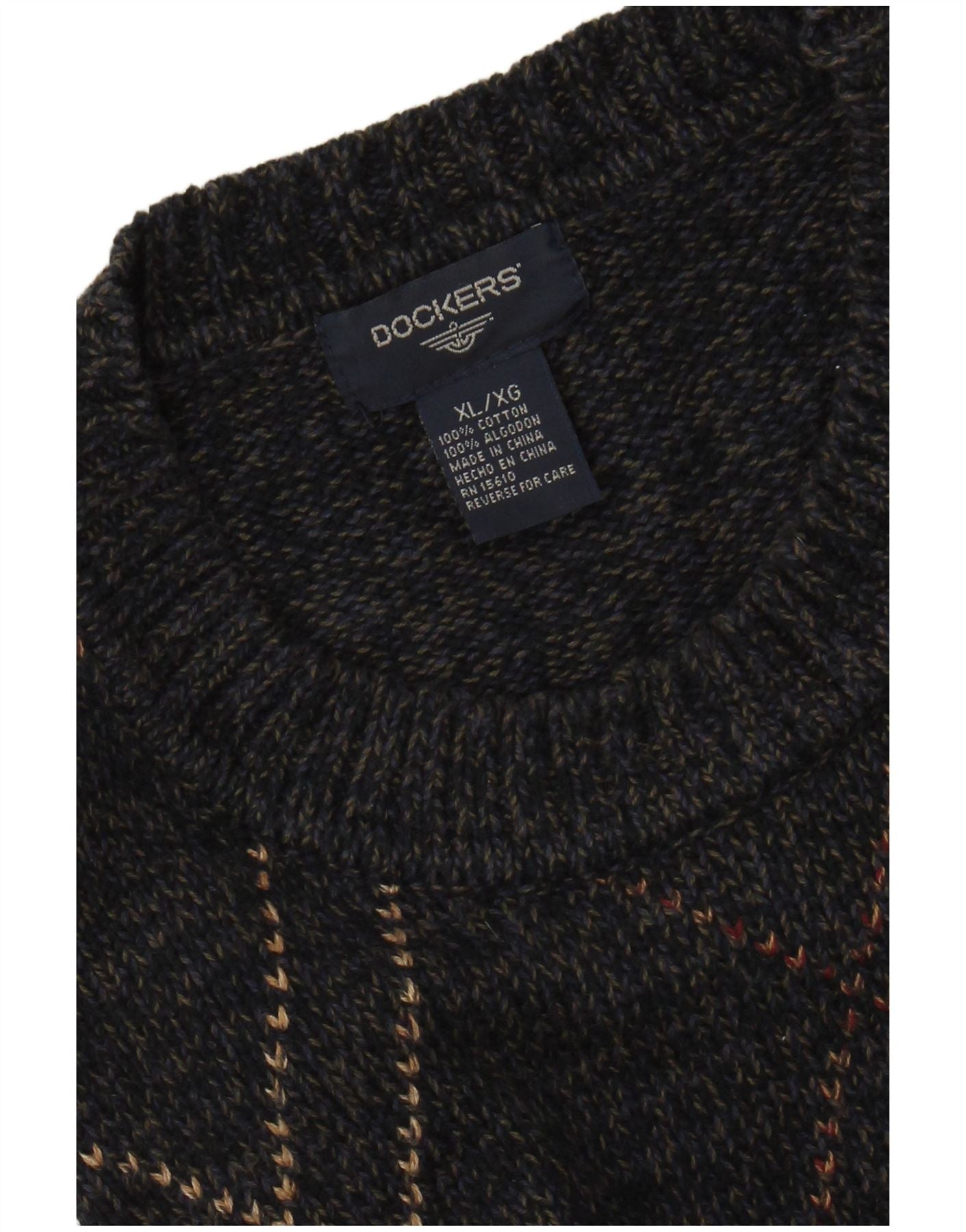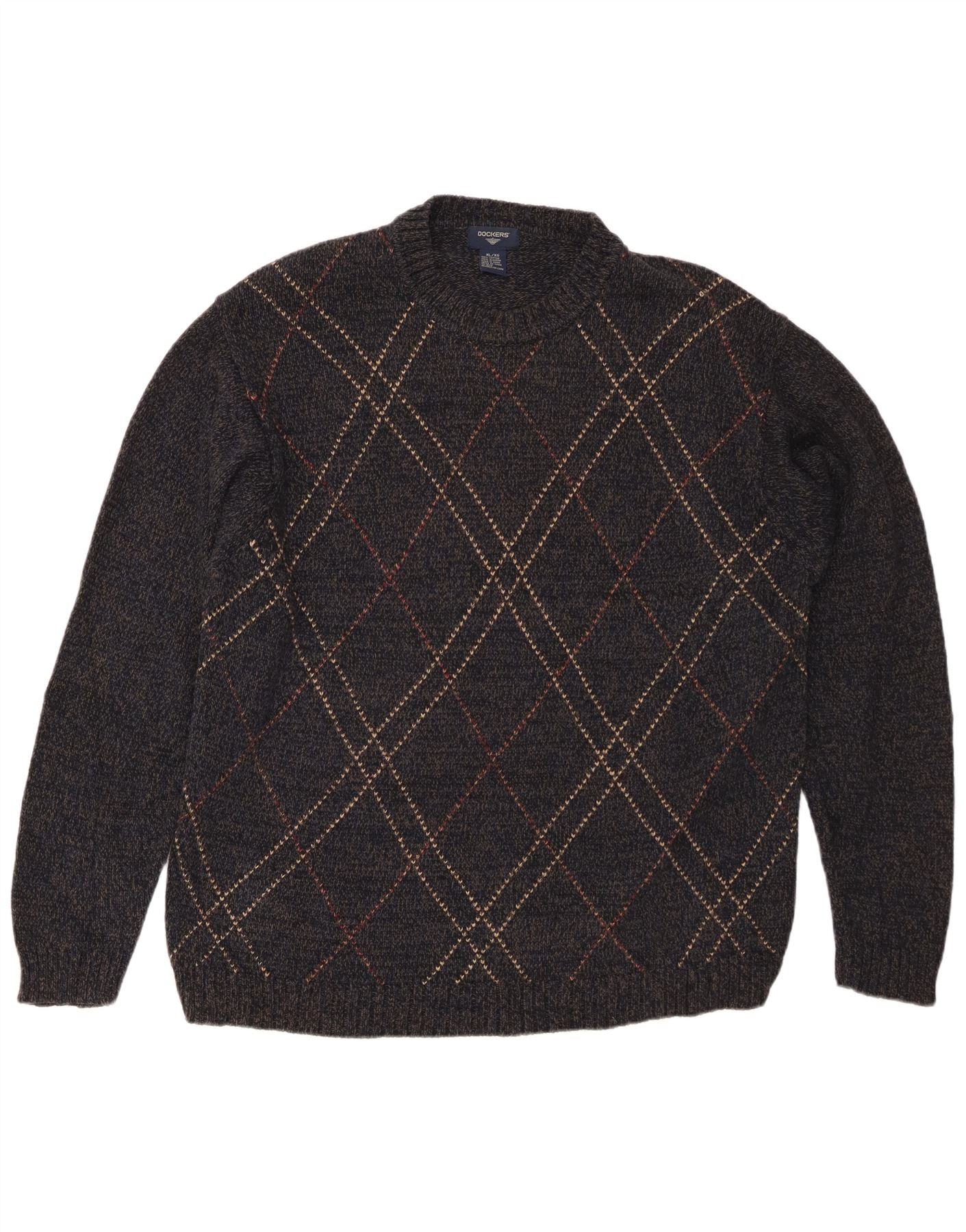 DOCKERS Pull Col Rond Homme XL Bleu Marine Argyle/Diamant Coton