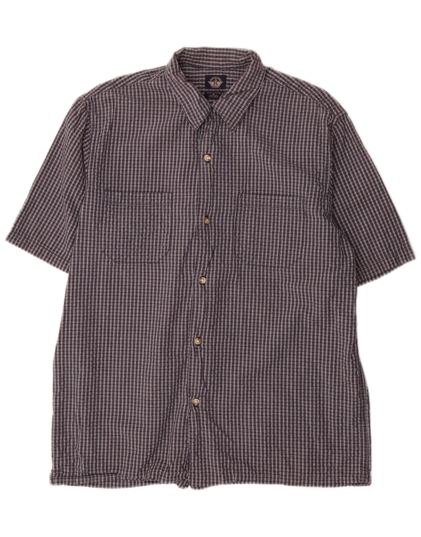 DOCKERS Chemise à Manches Courtes Homme Bleu Marine Moyen à Carreaux Coton