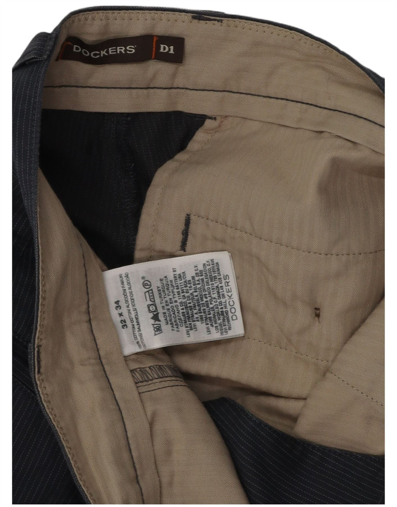 DOCKERS Pantalon Chino Droit Homme W32 L29 Bleu Marine en Coton à Fines Rayures