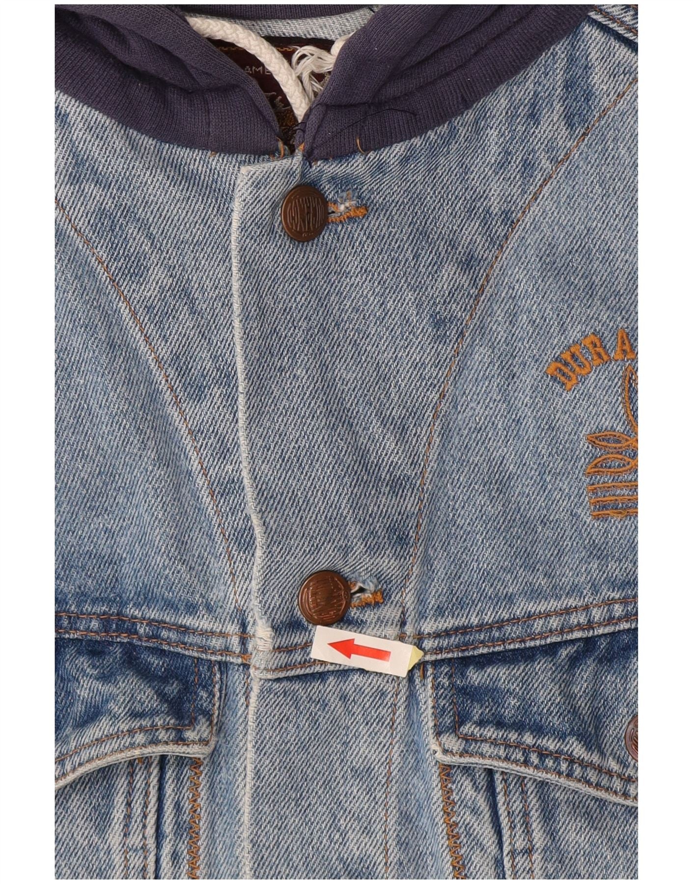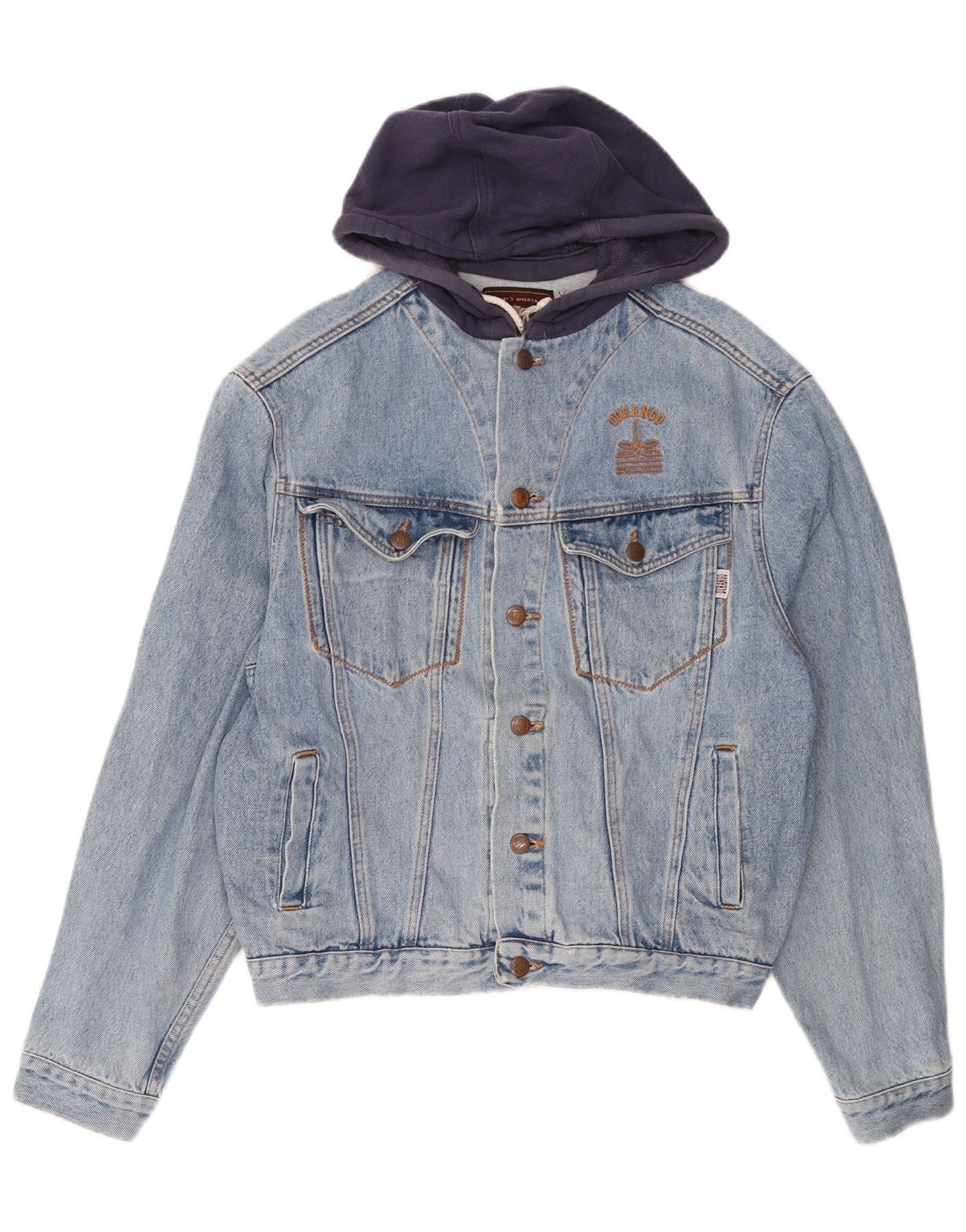 DURANGO Veste en jean à capuche pour homme UK 40 Large Bleu Colorblock Coton