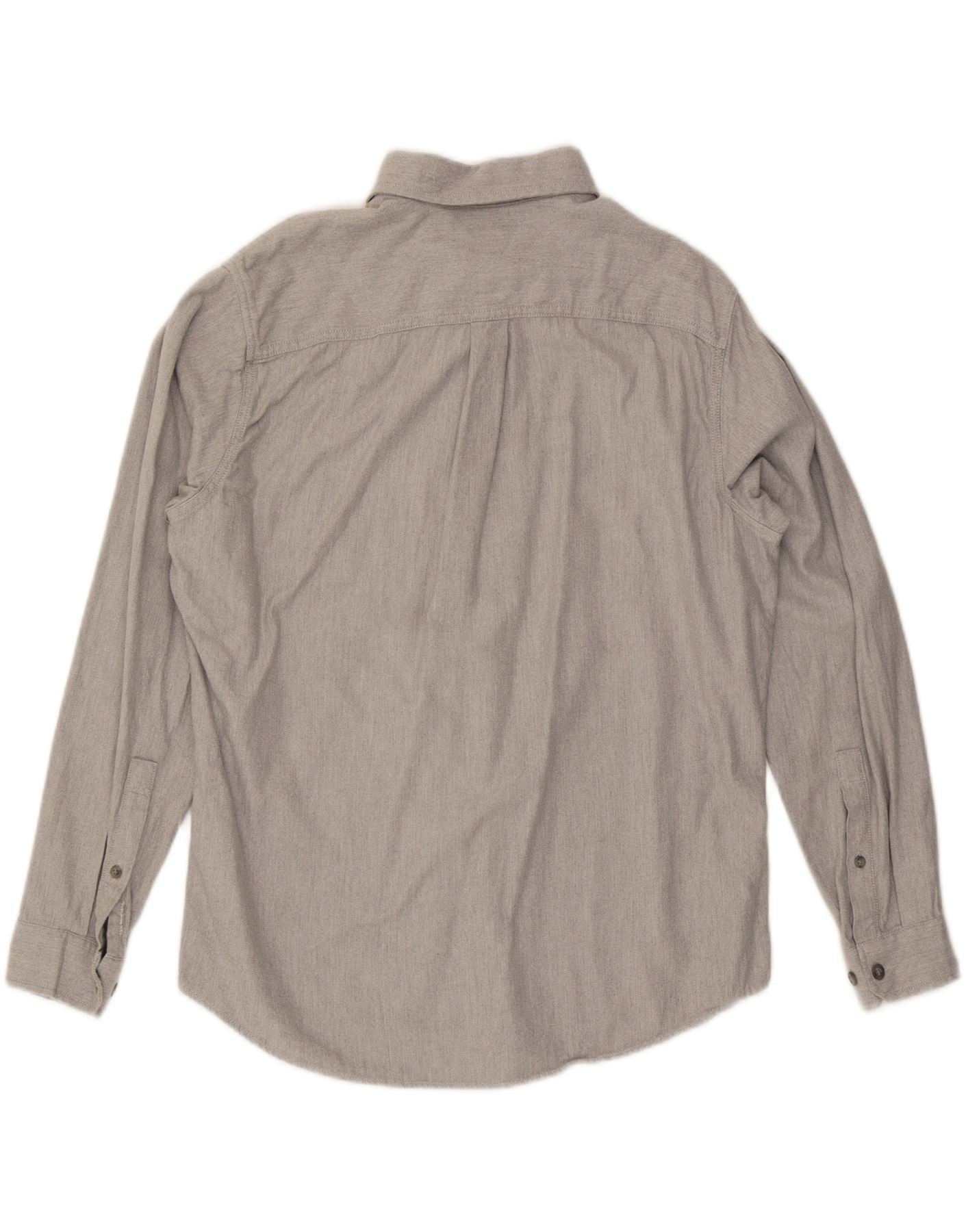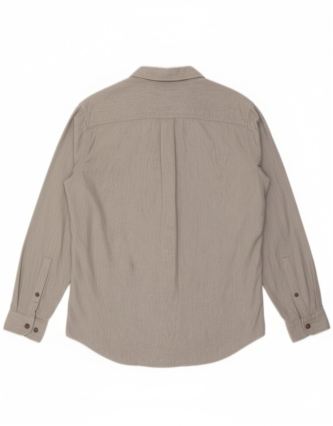 - AI Description: This Eddie Bauer men’s shirt is crafted from soft grey chambray cotton, featuring a subtle herringbone weave. It boasts a collared neckline and long sleeves, giving it a timeless appeal. The classic fit offers comfort and freedom of movement. Front button closure and practical chest pockets complete the design, blending utility with understated style.