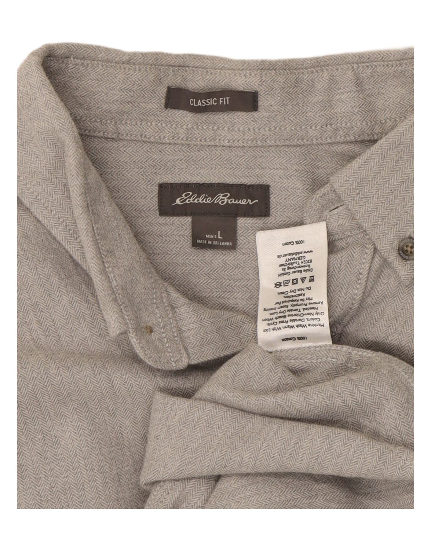 EDDIE BAUER Mens Classic Fit Shirt Large Grey Herringbone Cotton
