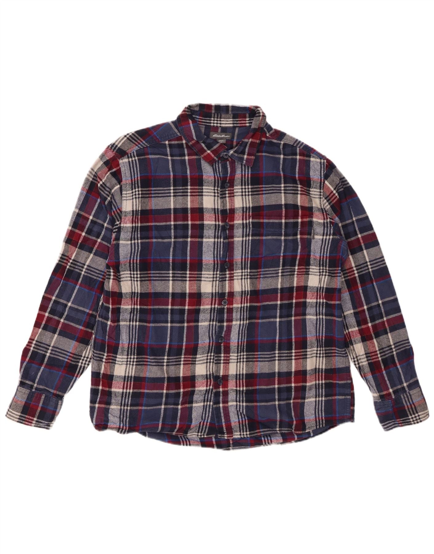 EDDIE BAUER Chemise Flanelle Homme Grand Carreau Bleu Marine Coton