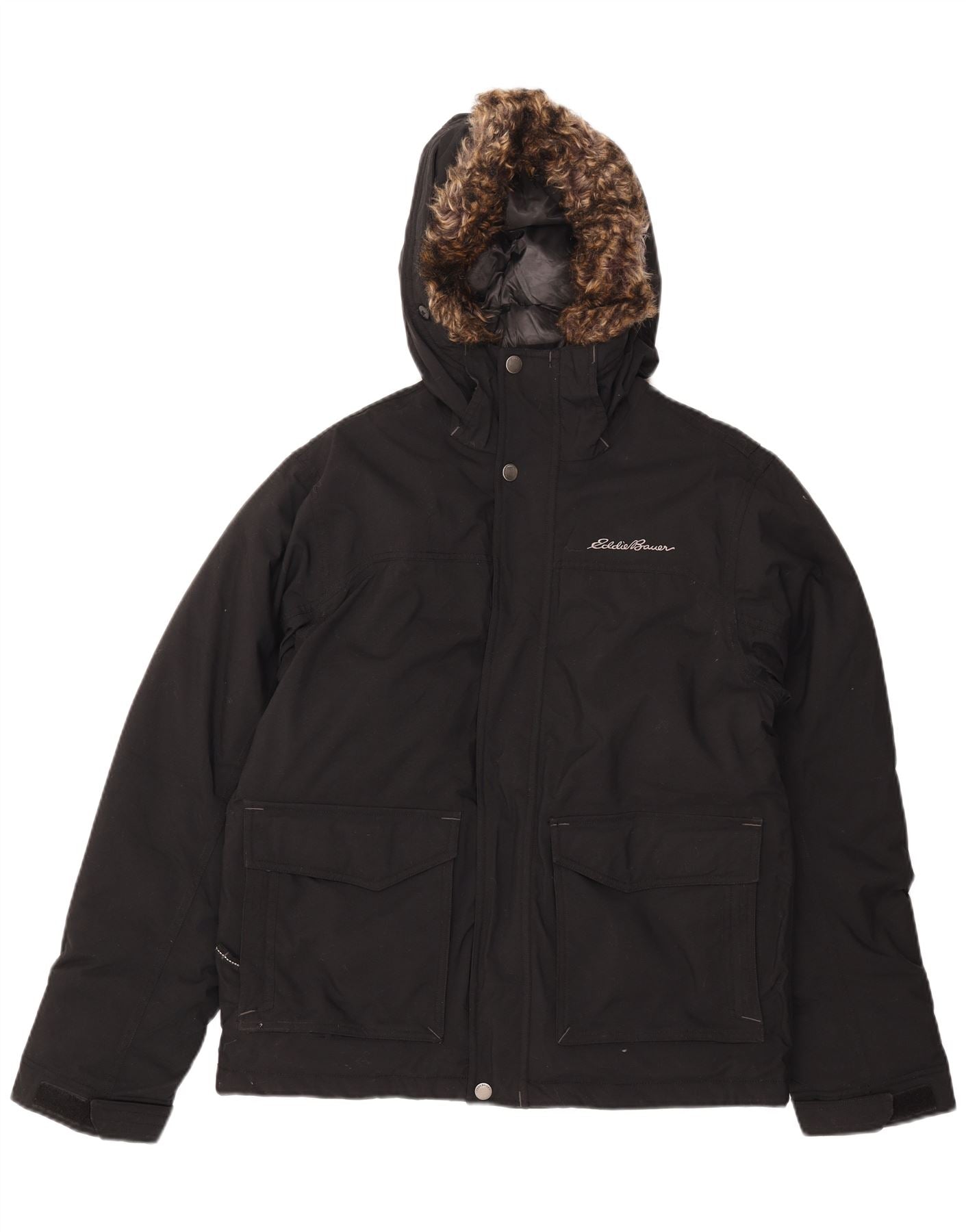 EDDIE BAUER Veste coupe-vent à capuche pour homme UK 38 Medium Black Nylon