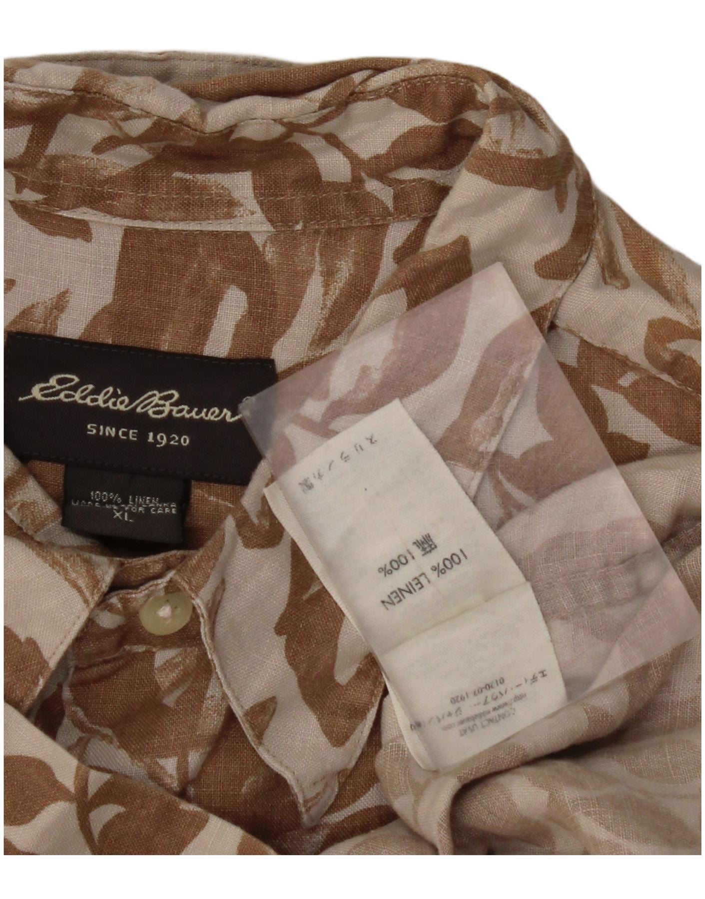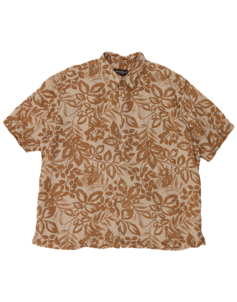 EDDIE BAUER Chemise à Manches Courtes Homme XL Lin Floral Beige