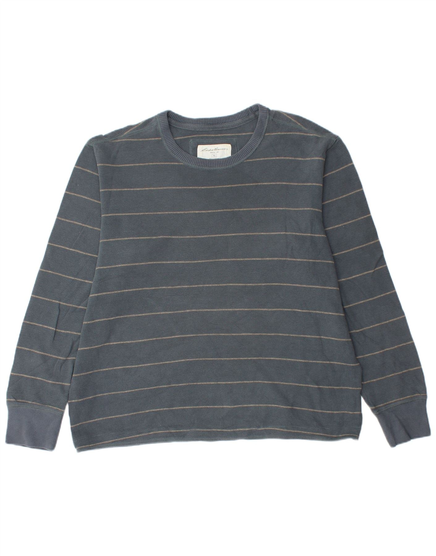 EDDIE BAUER Haut Homme Manches Longues XL Bleu Rayé Coton