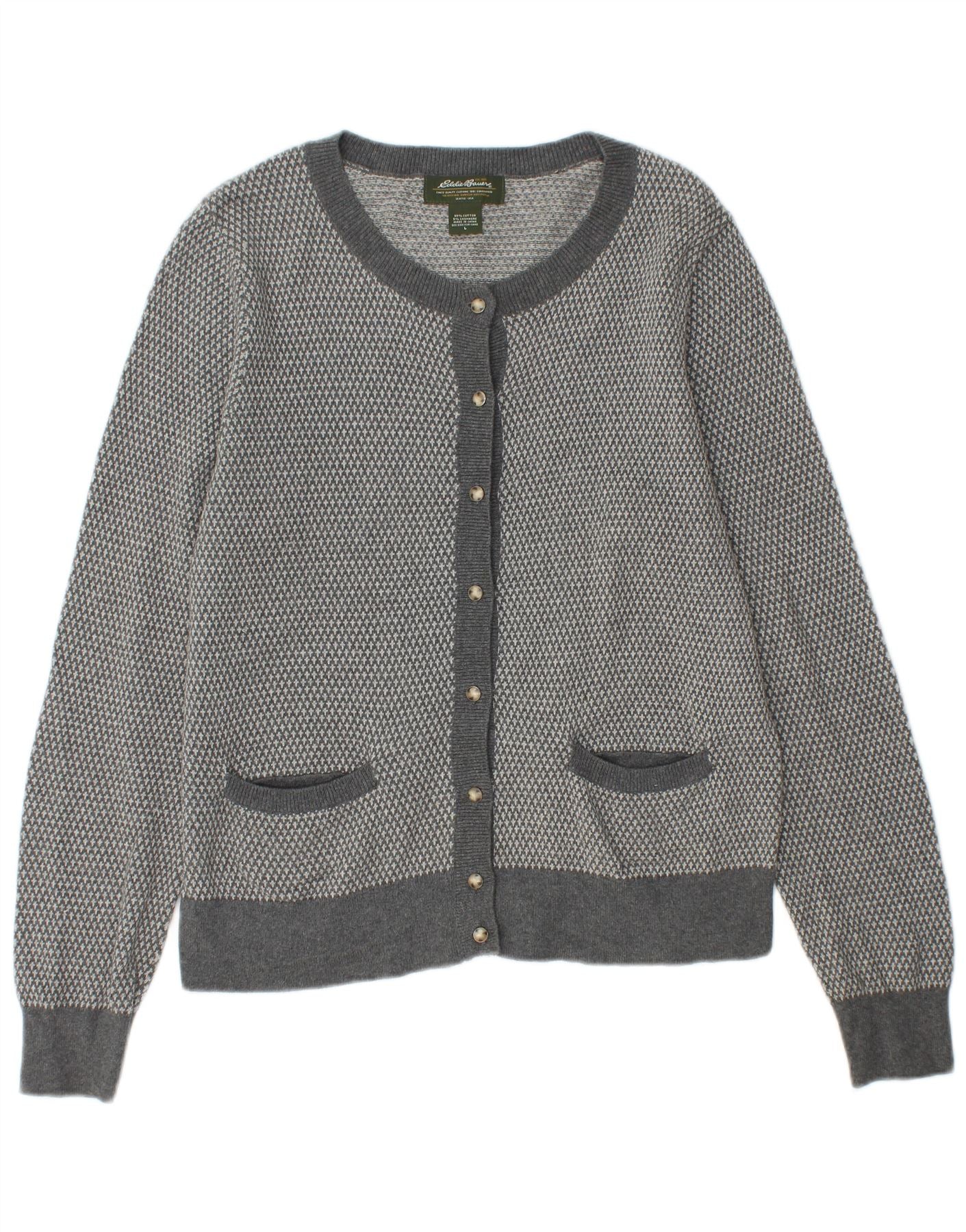 EDDIE BAUER Pull Cardigan Femme UK 14 Grand Coton Gris